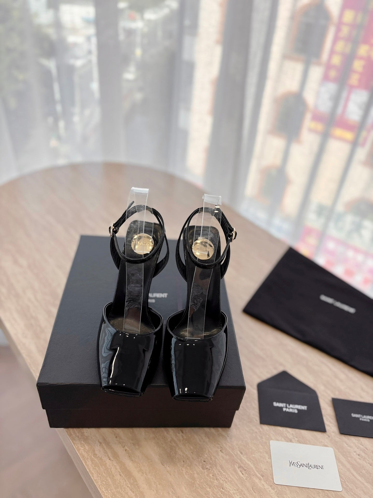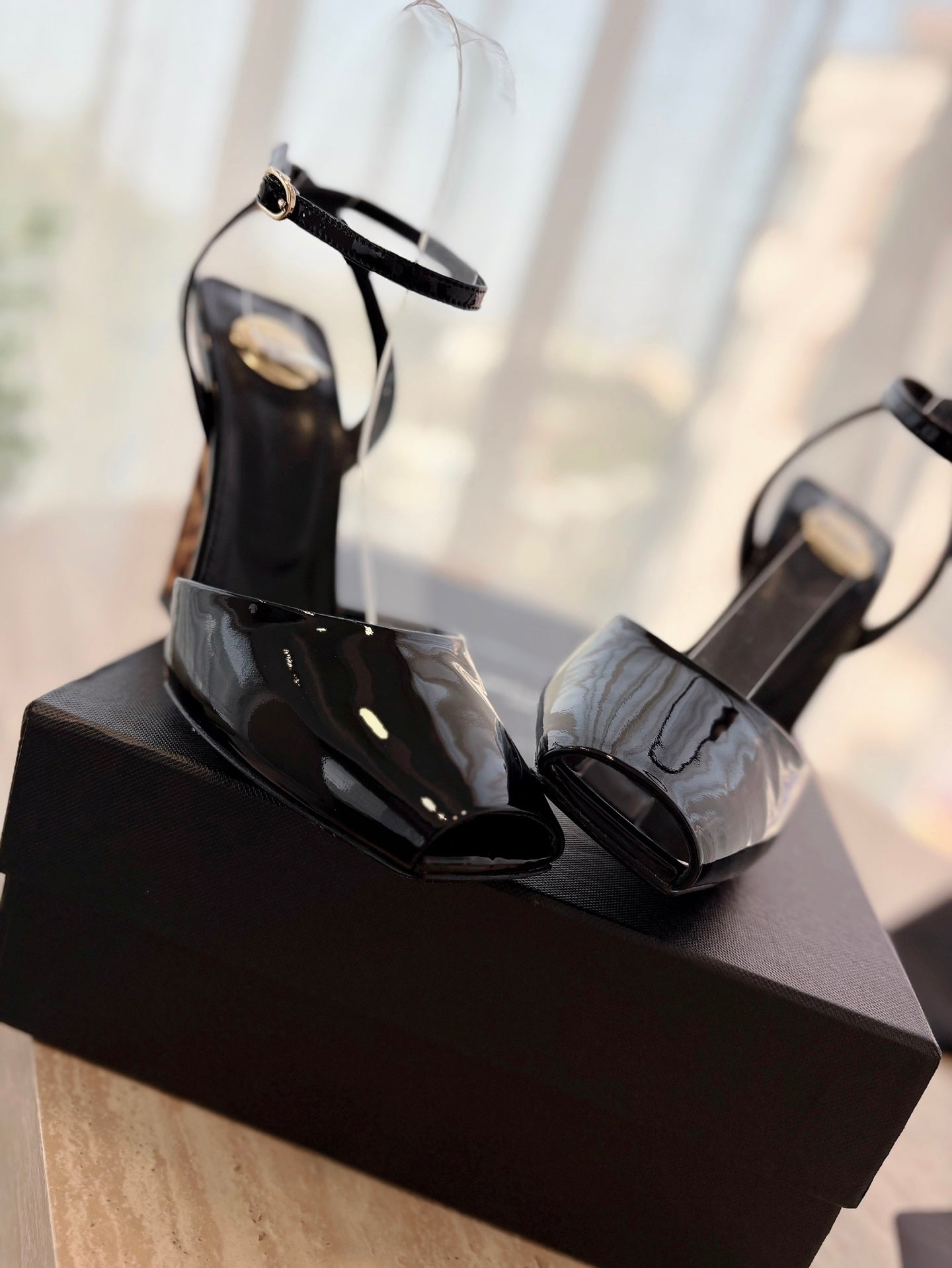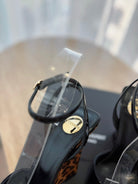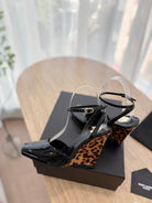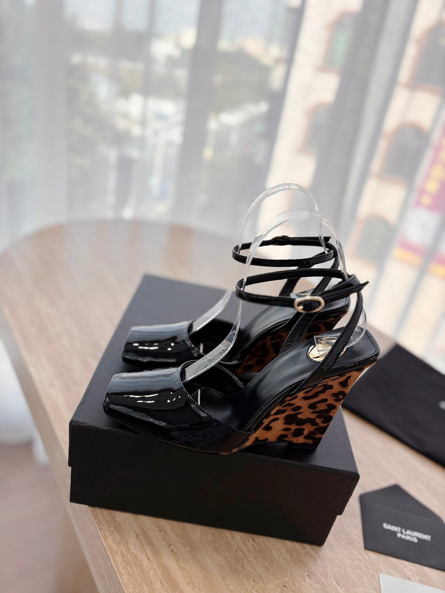 • Material: Patent Calfskin With Leopard Wedge