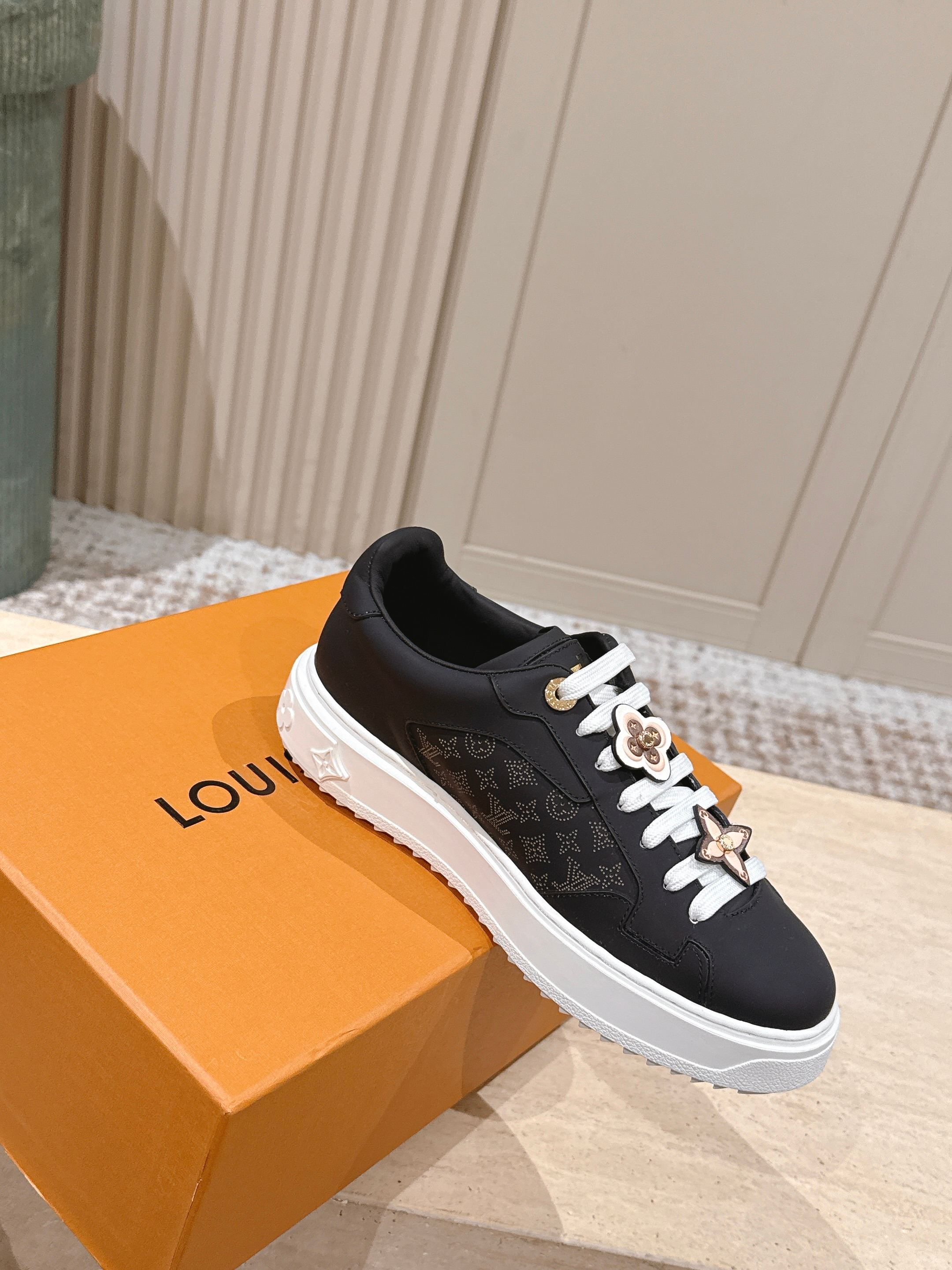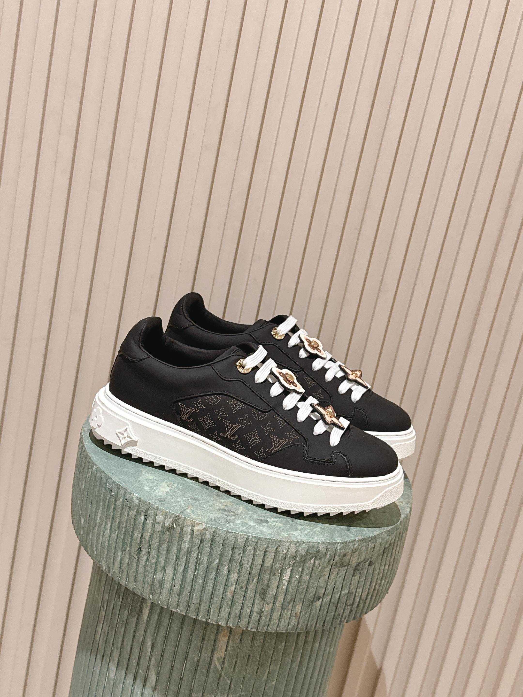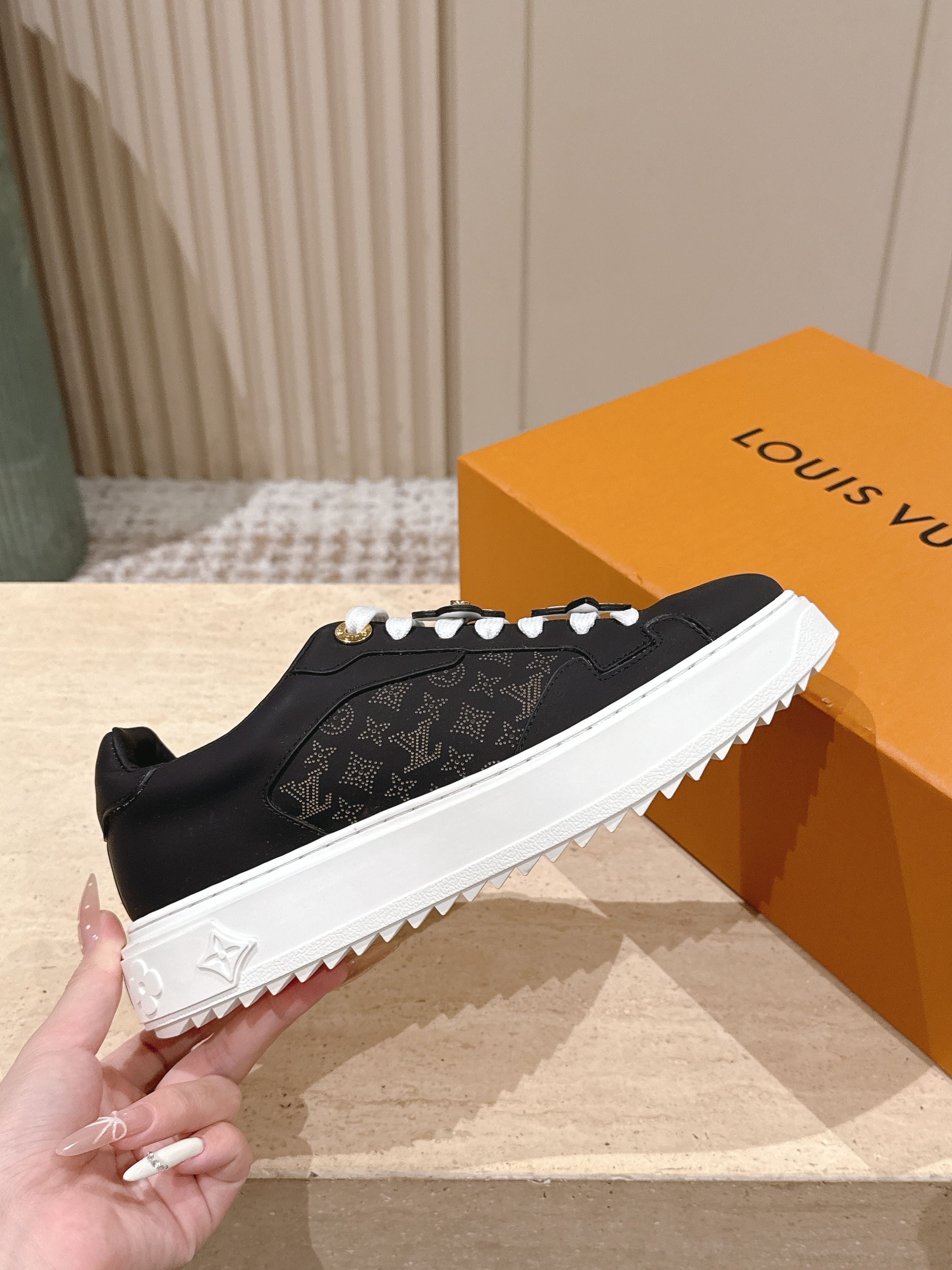 LV 1AICMB Time Out Sneaker Black Perforated Mahina Mongram Leather 555678