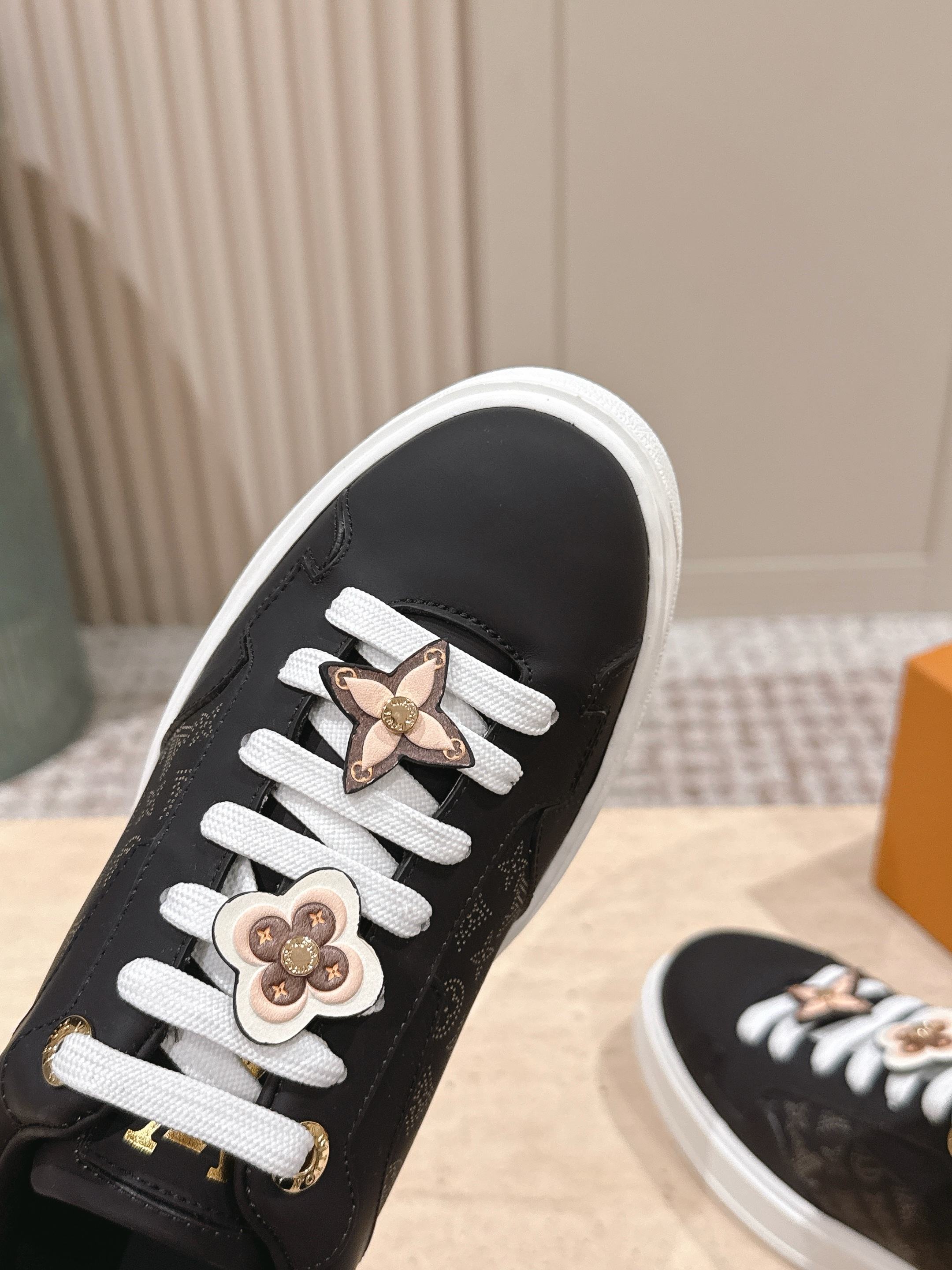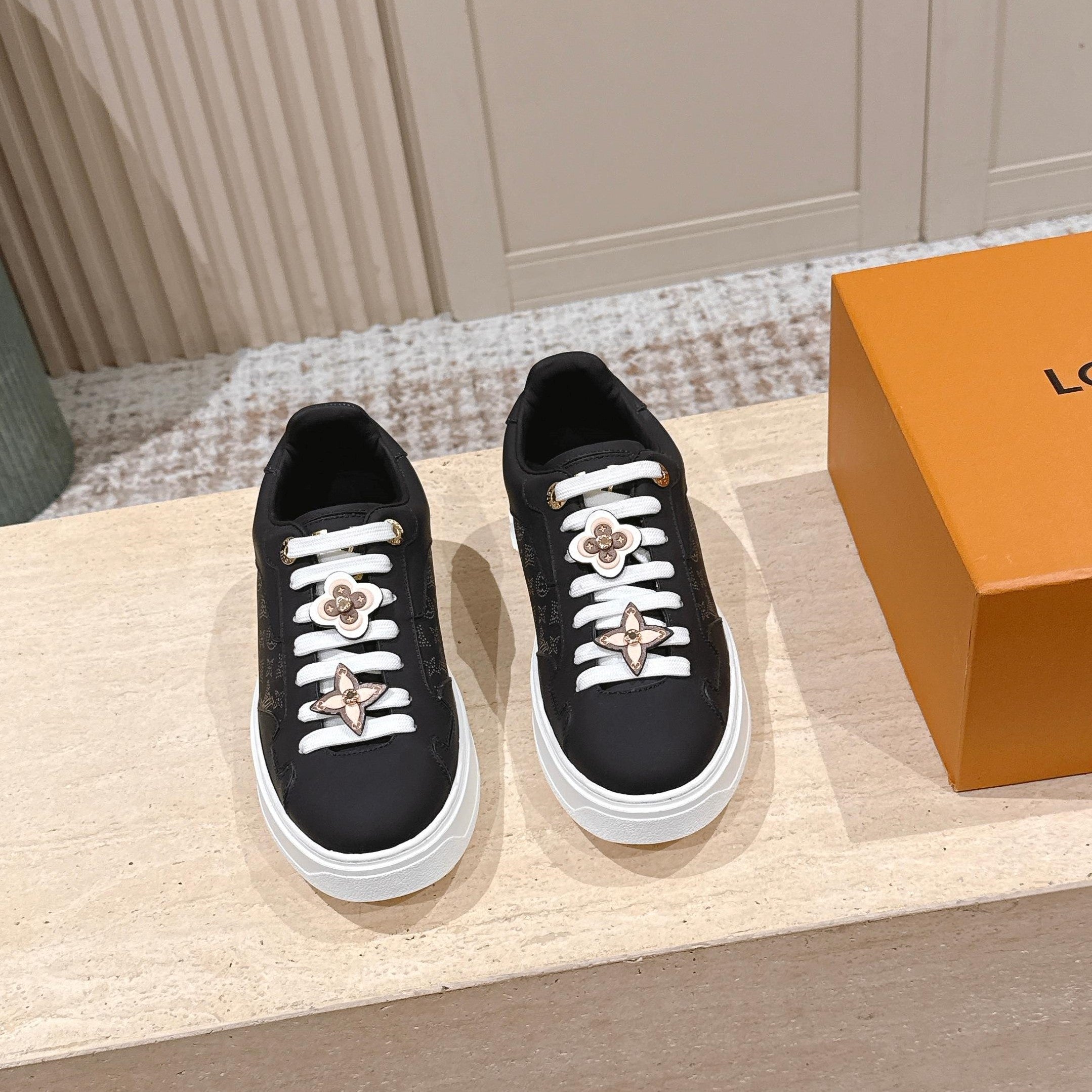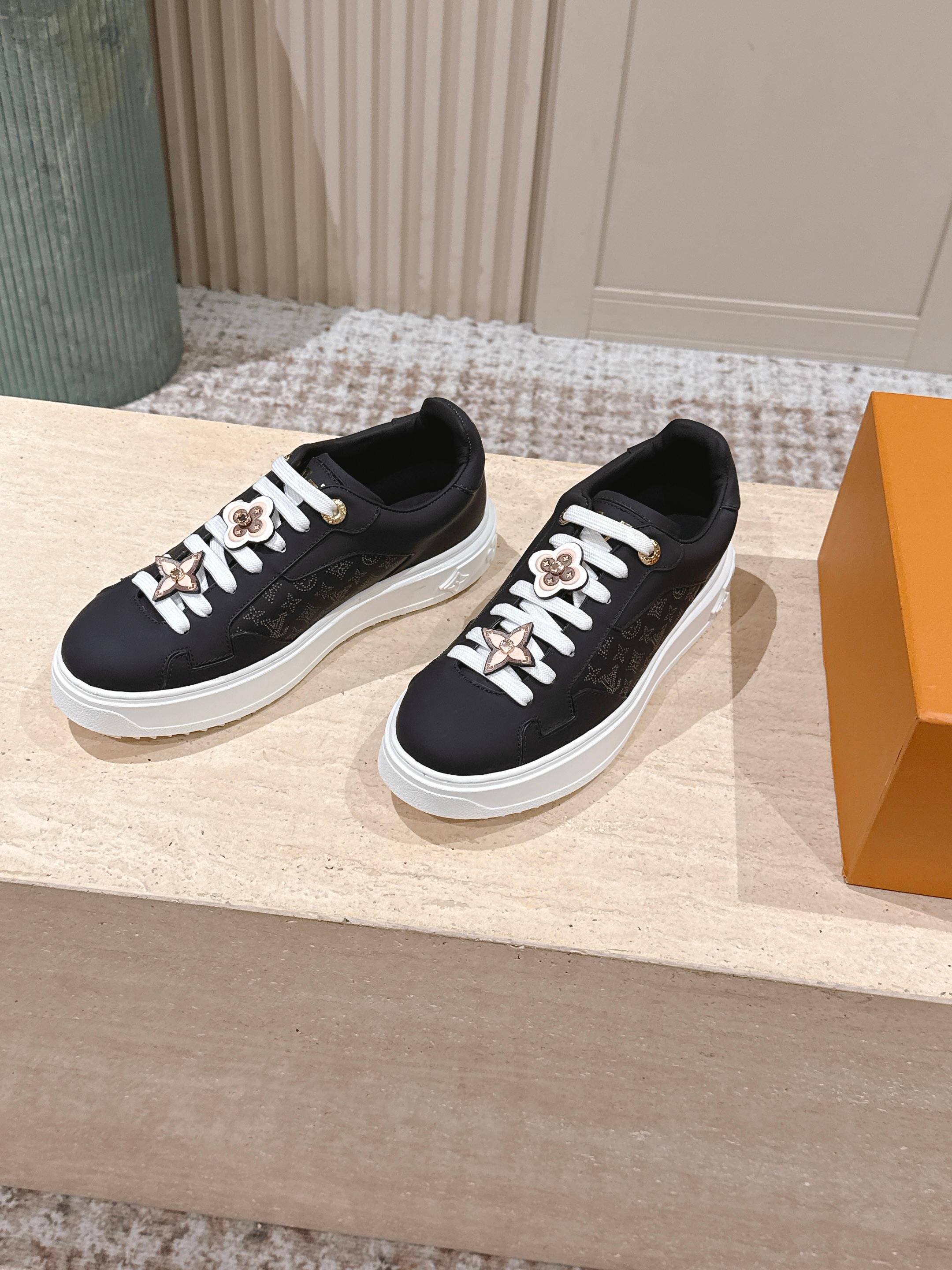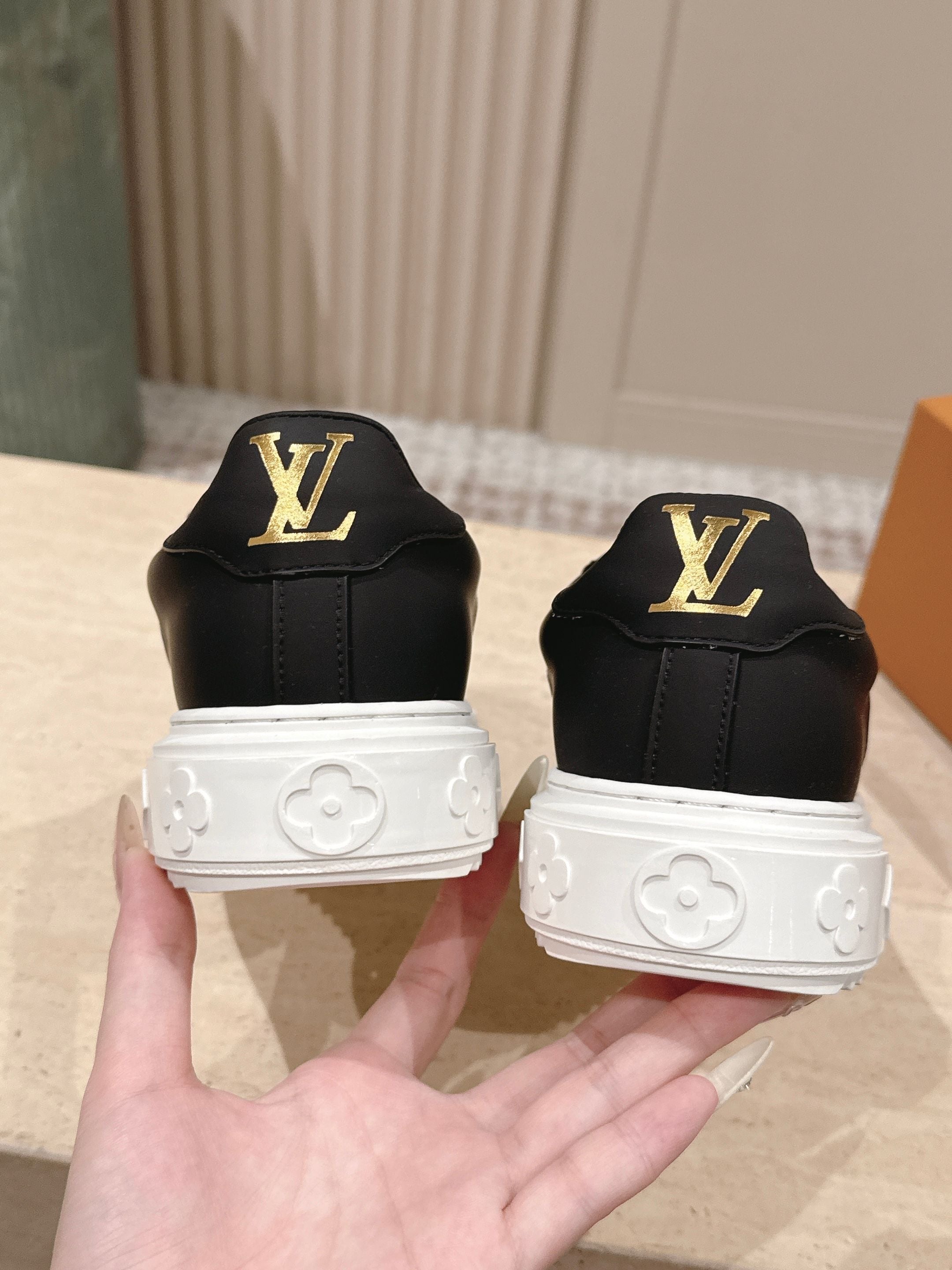 LV 1AICMB Time Out Sneaker Black Perforated Mahina Mongram Leather 555678