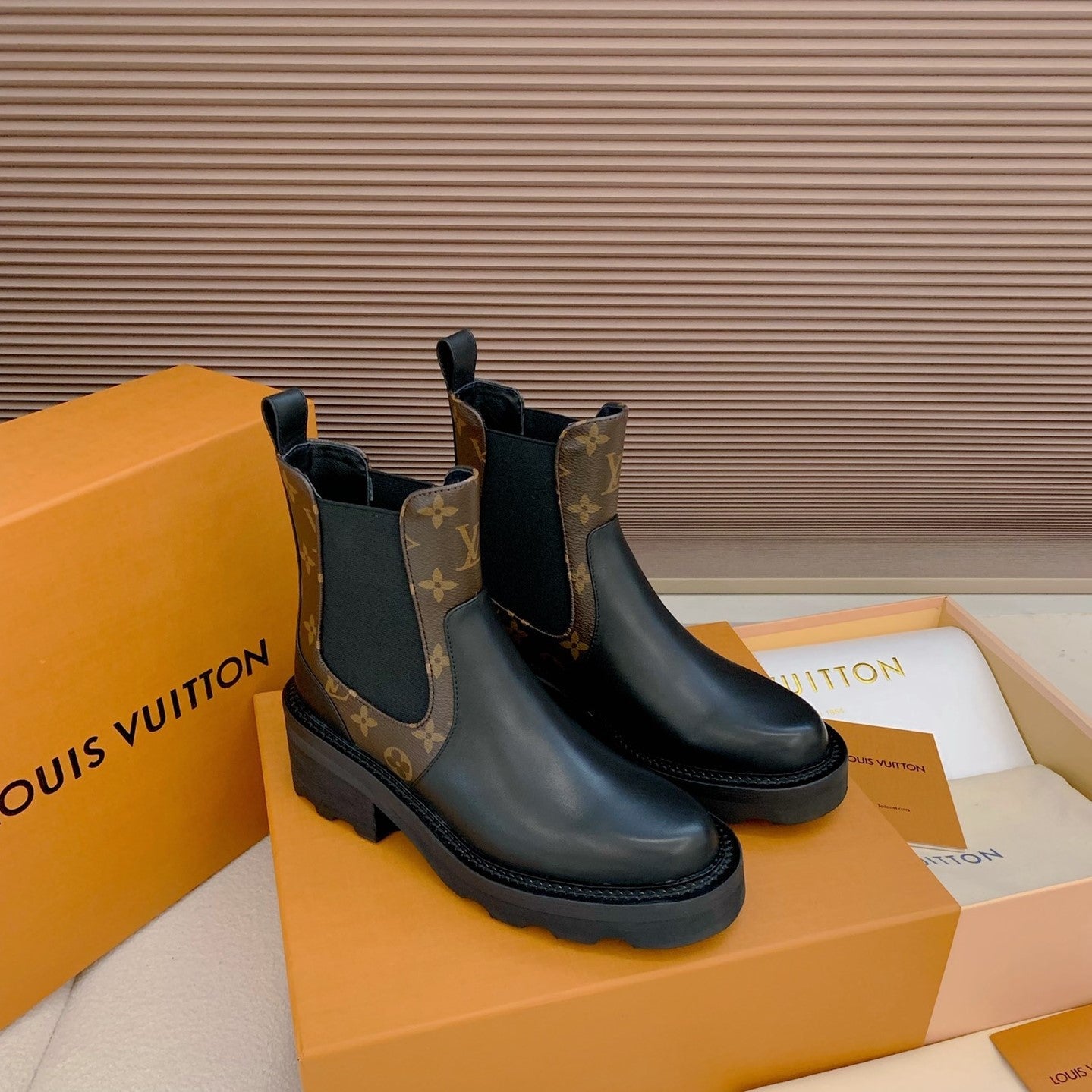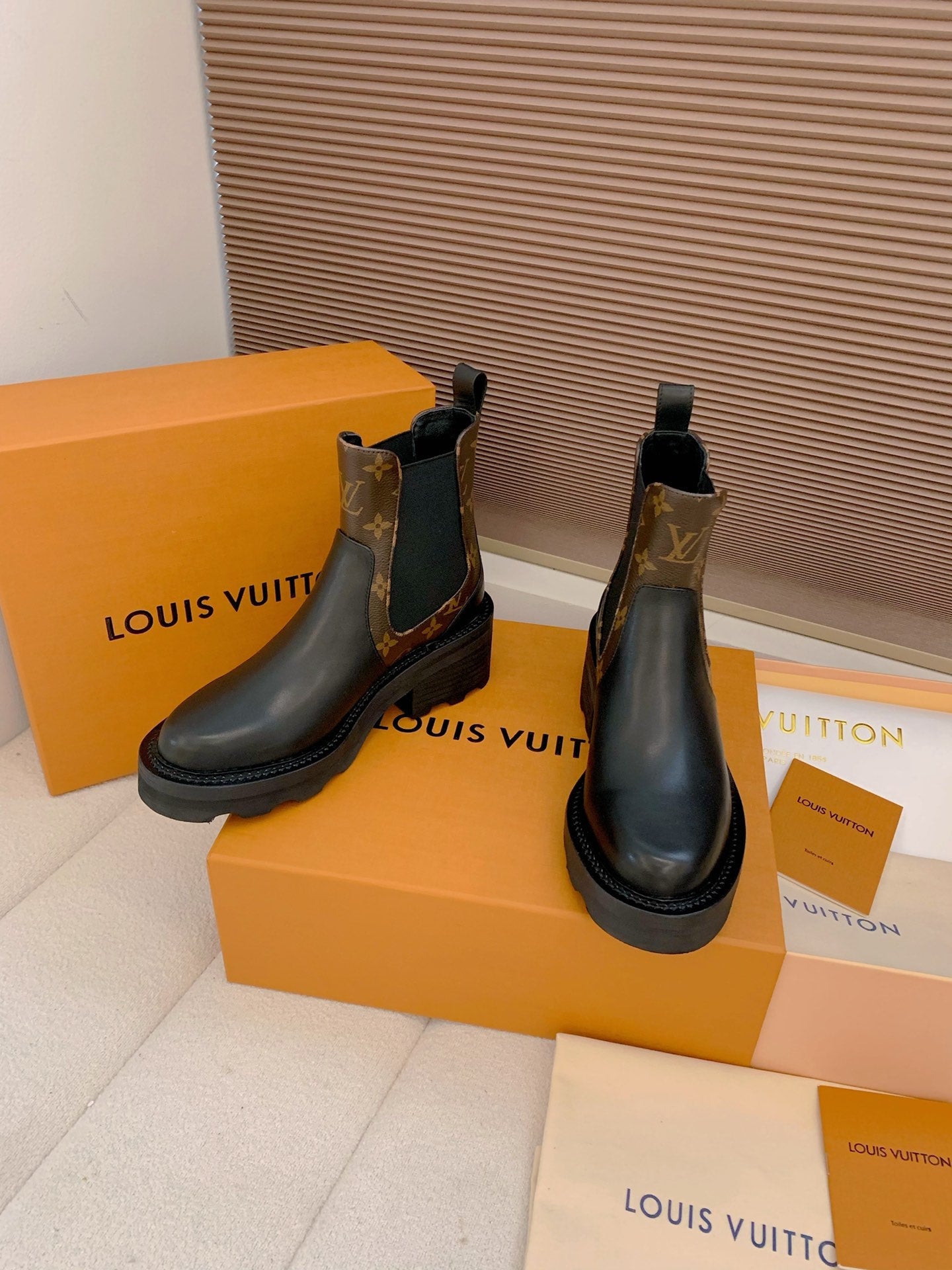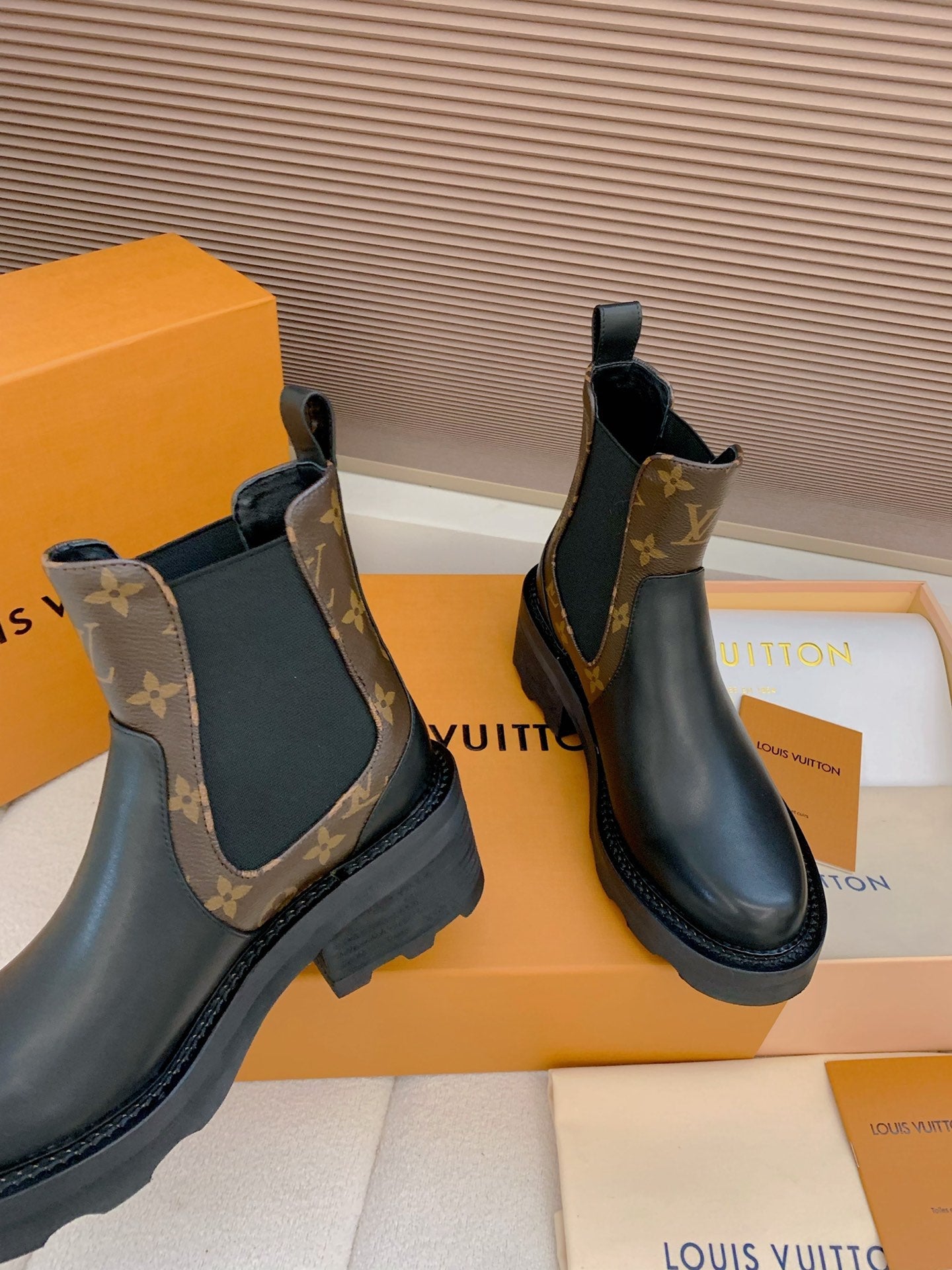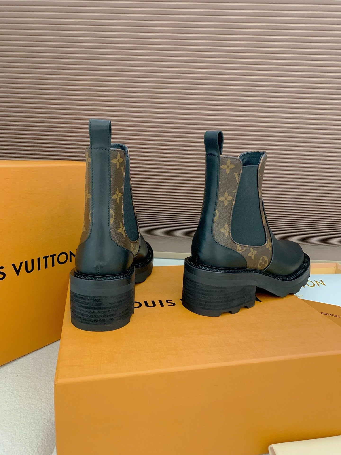 LV 25 Beaubourg Ankle Boots 40mm Black Brown Monogram Canvas & Cowhide 556843