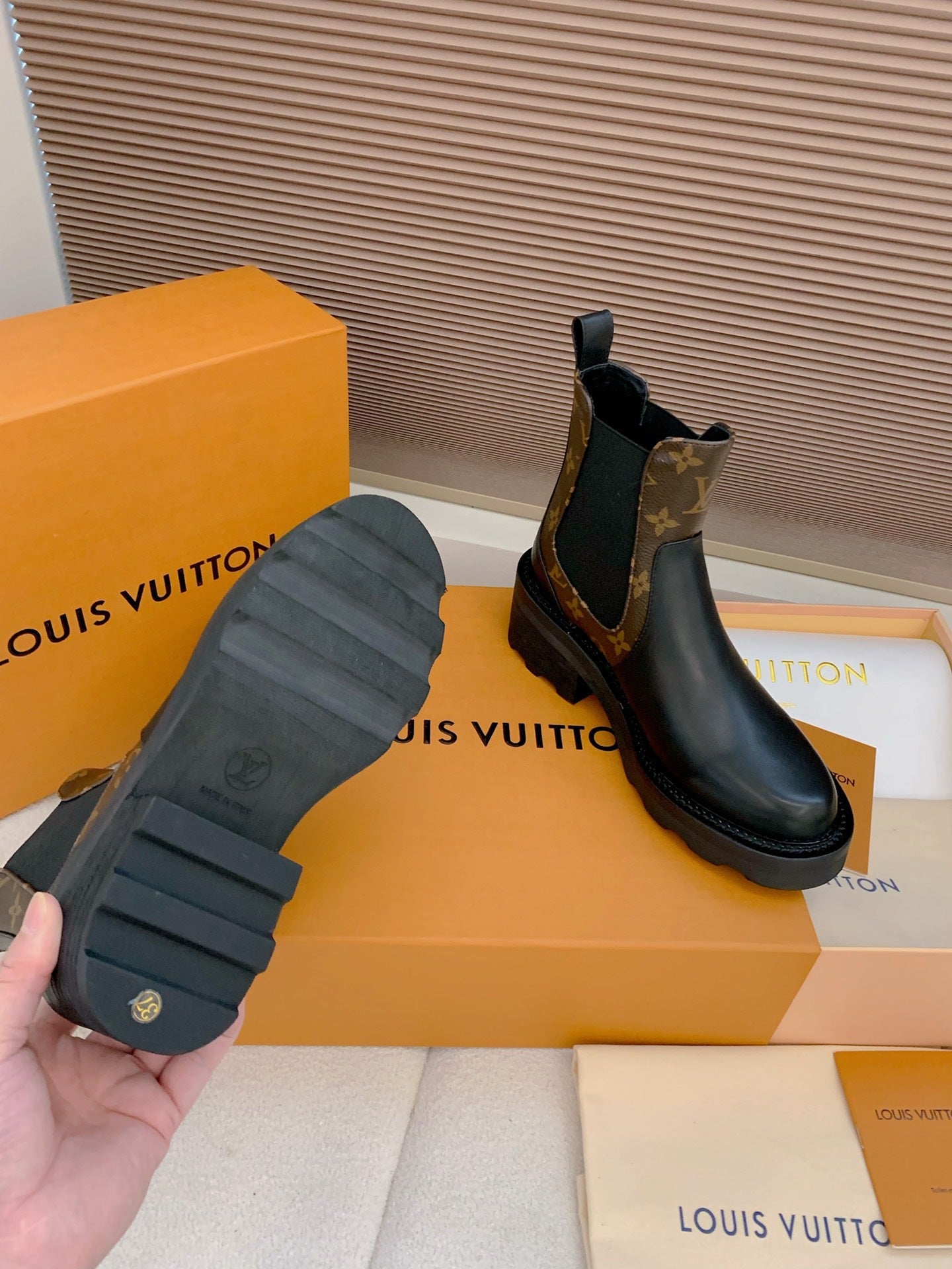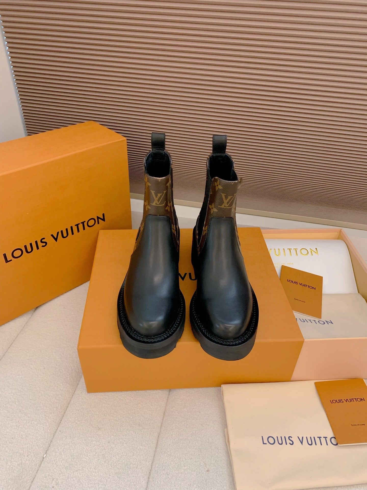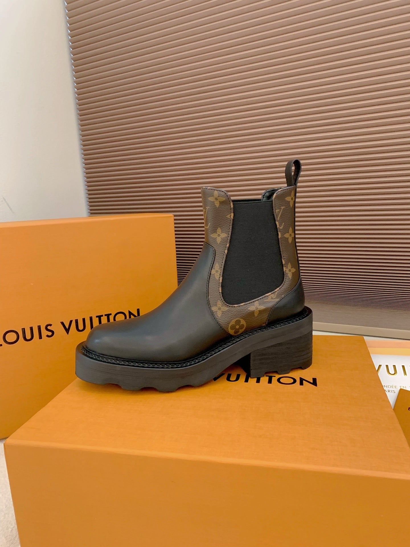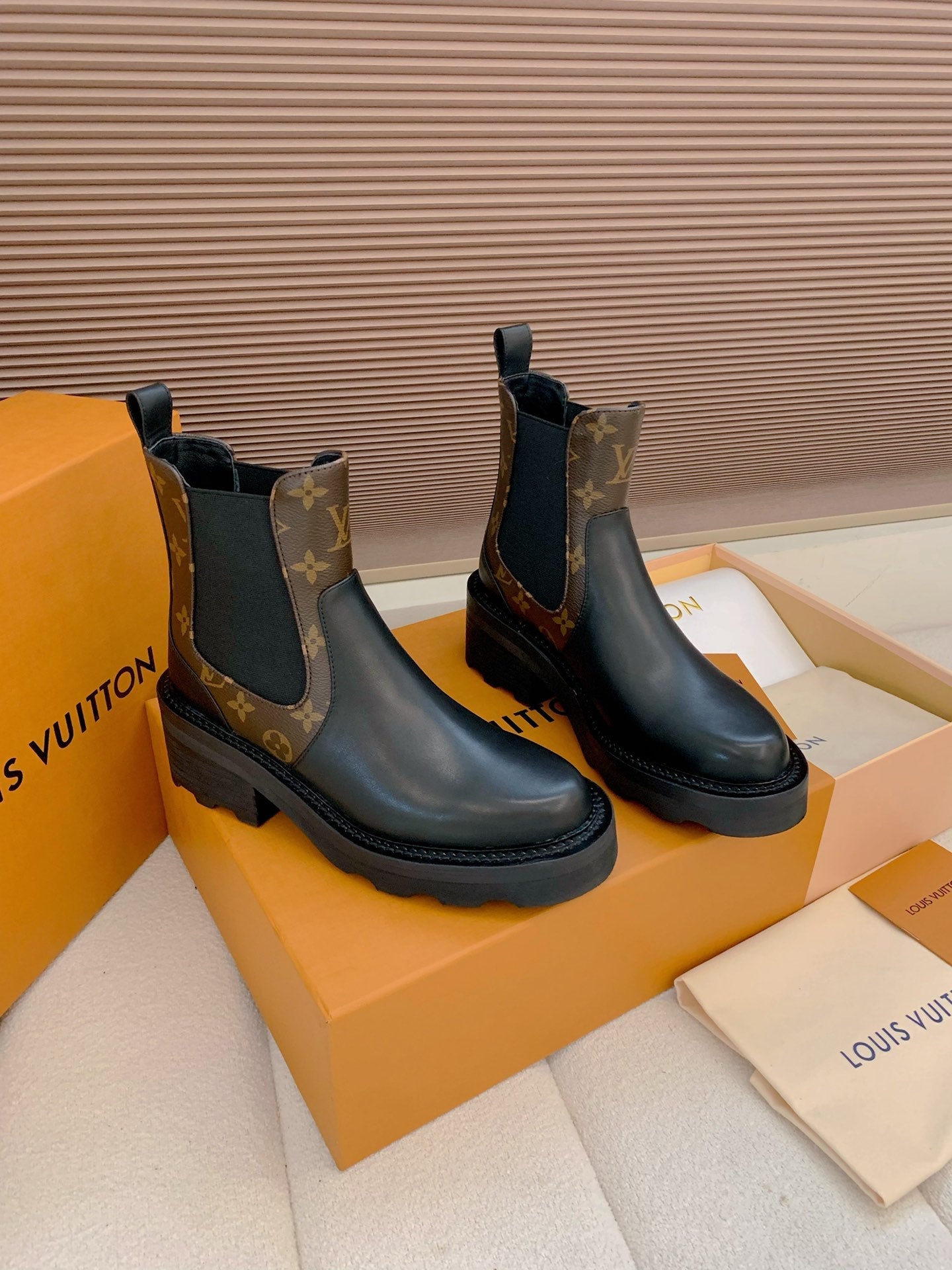 LV 25 Beaubourg Ankle Boots 40mm Black Brown Monogram Canvas & Cowhide 556843