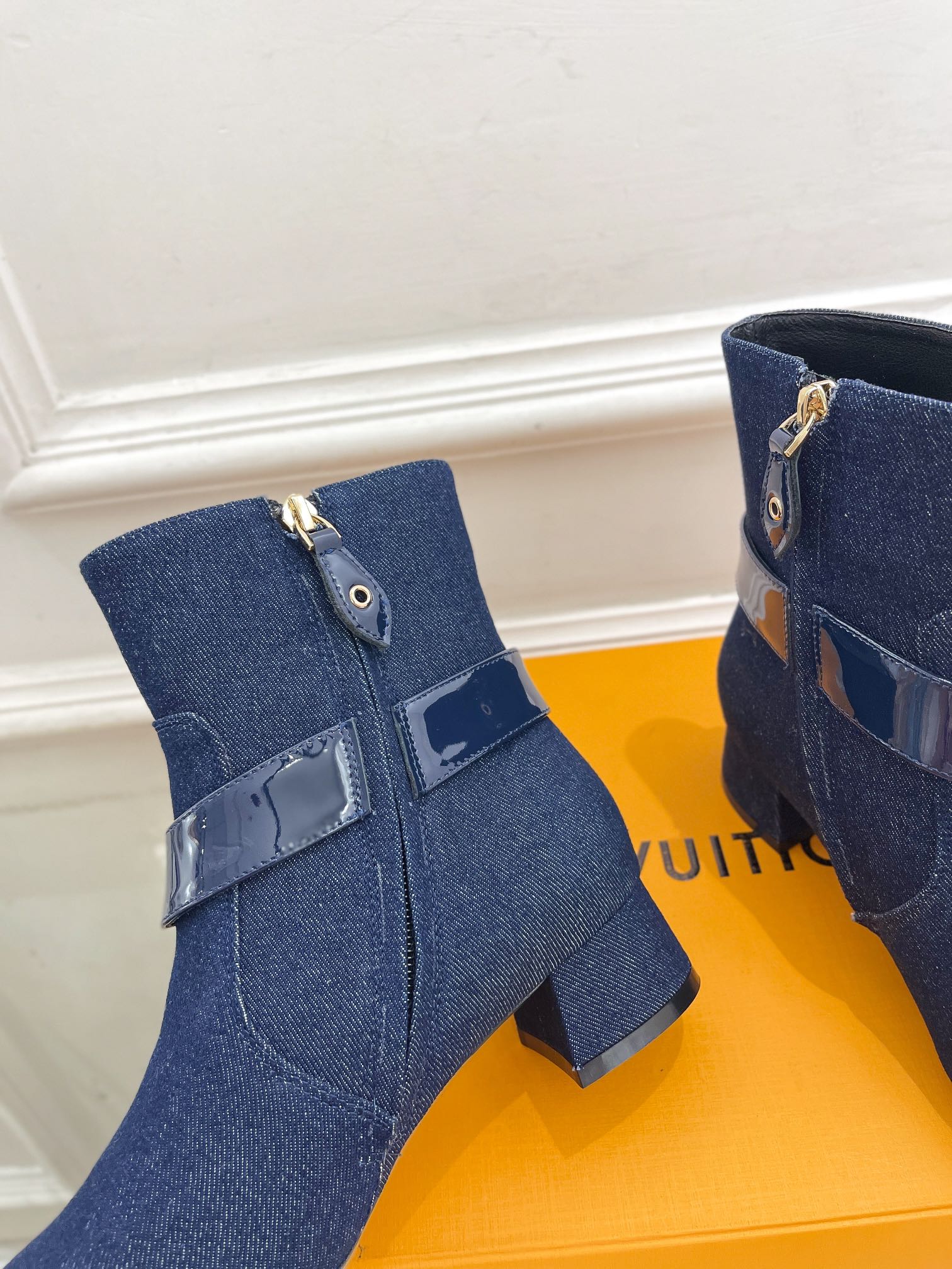 LV Ankle Boots 35mm Dark Blue Jacquard Fabric