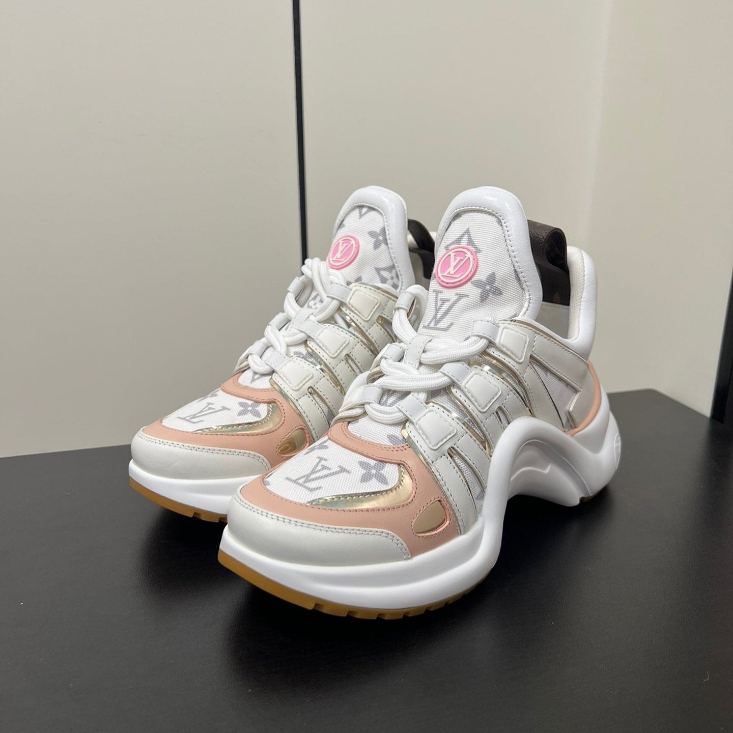 LV Archlight Sneaker 50mm White Mix Pastel Pink Monogram Jacquard Fabric
