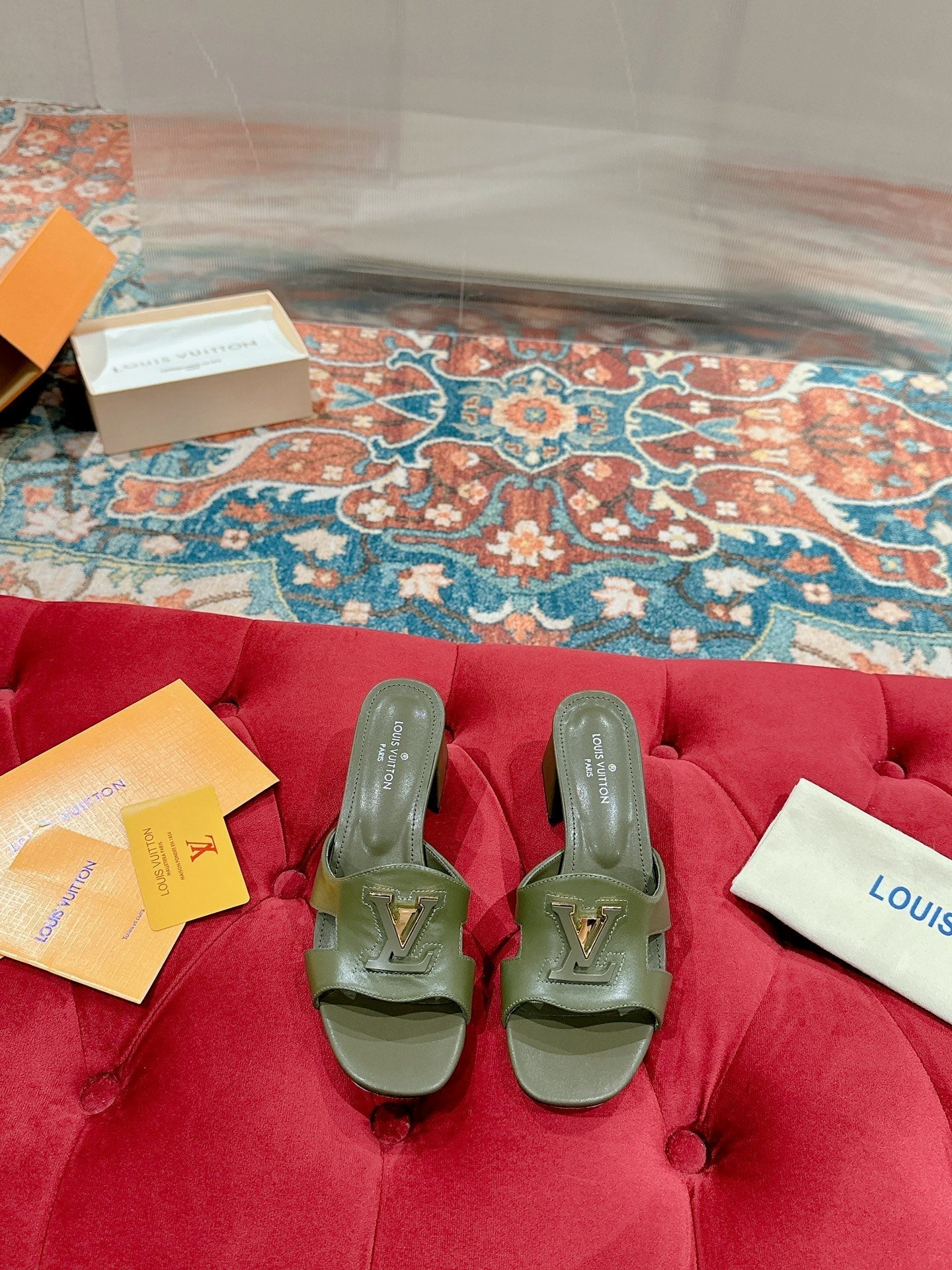 lv capri mule 45mm khaki green calfskin