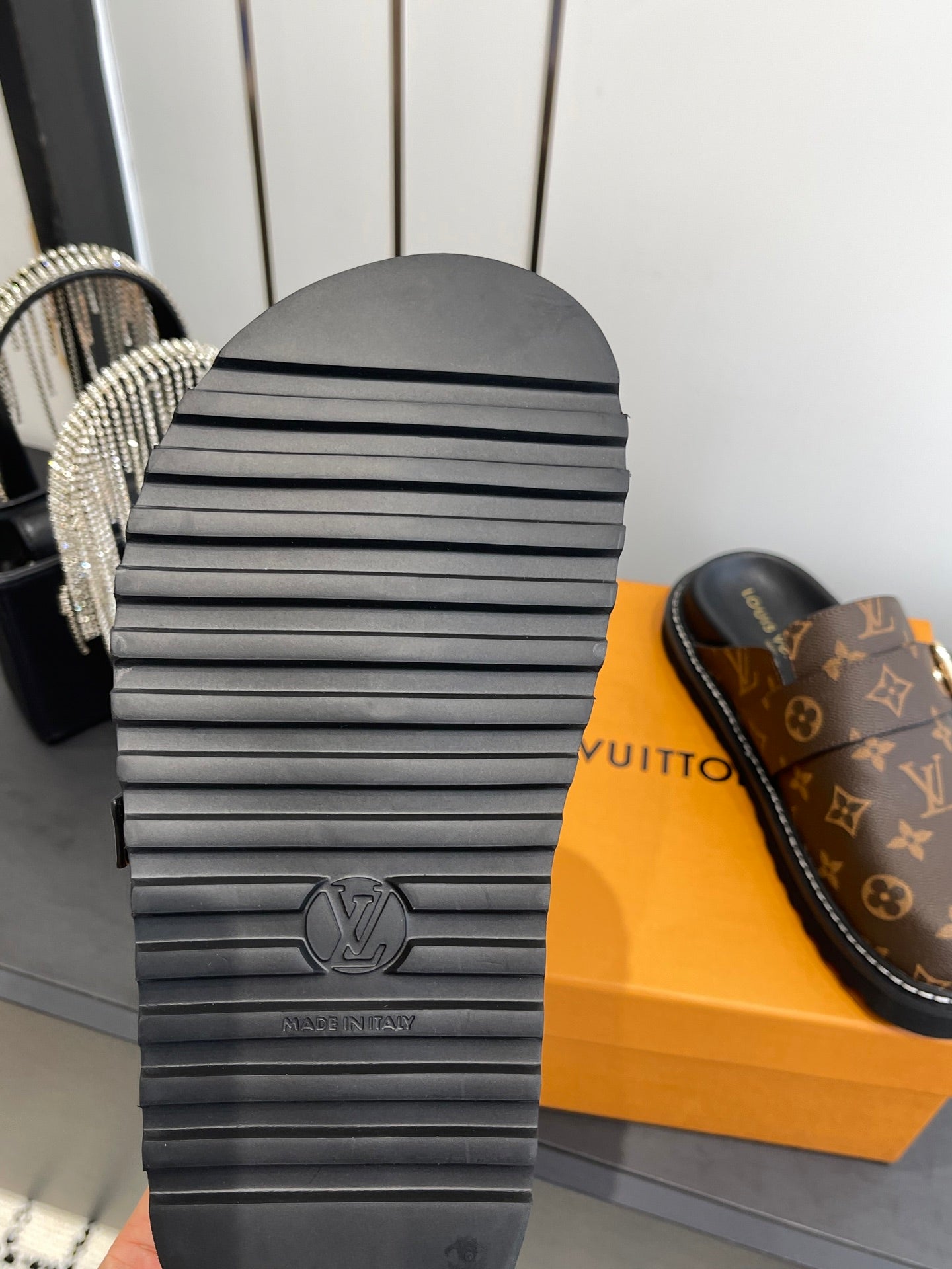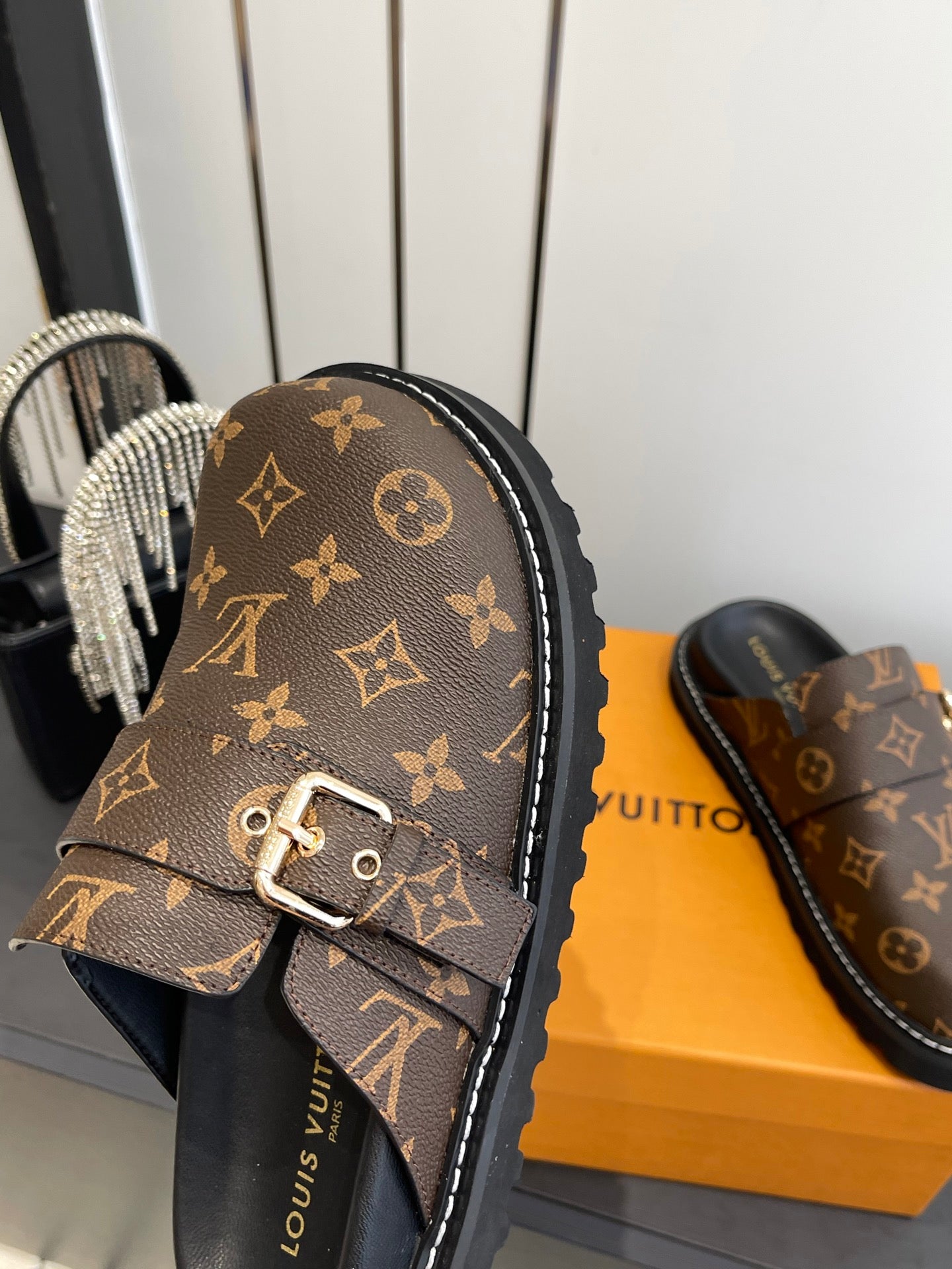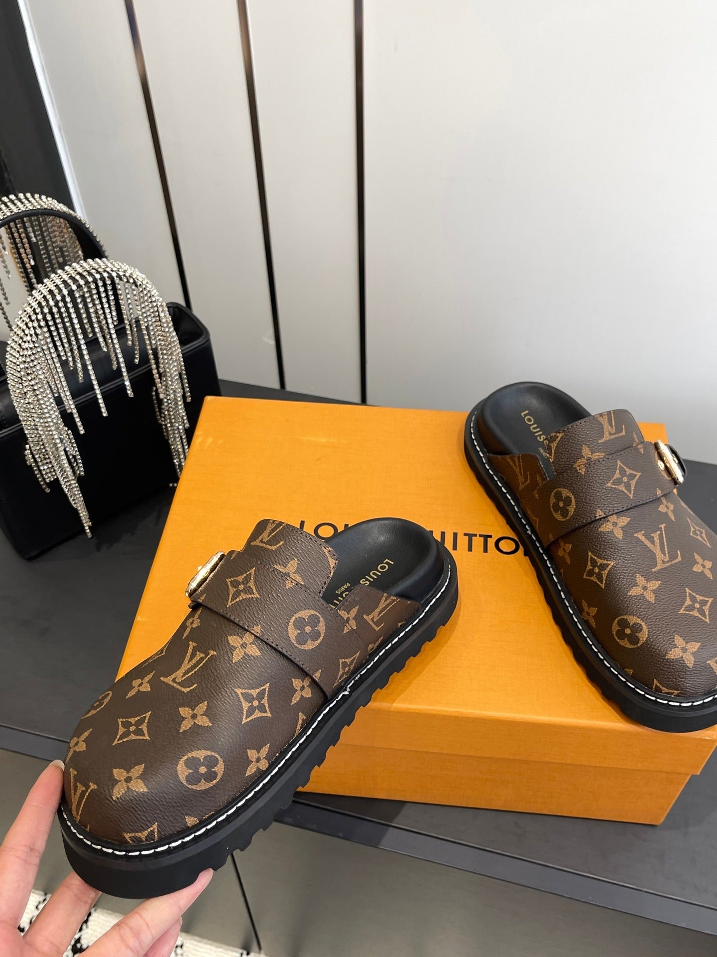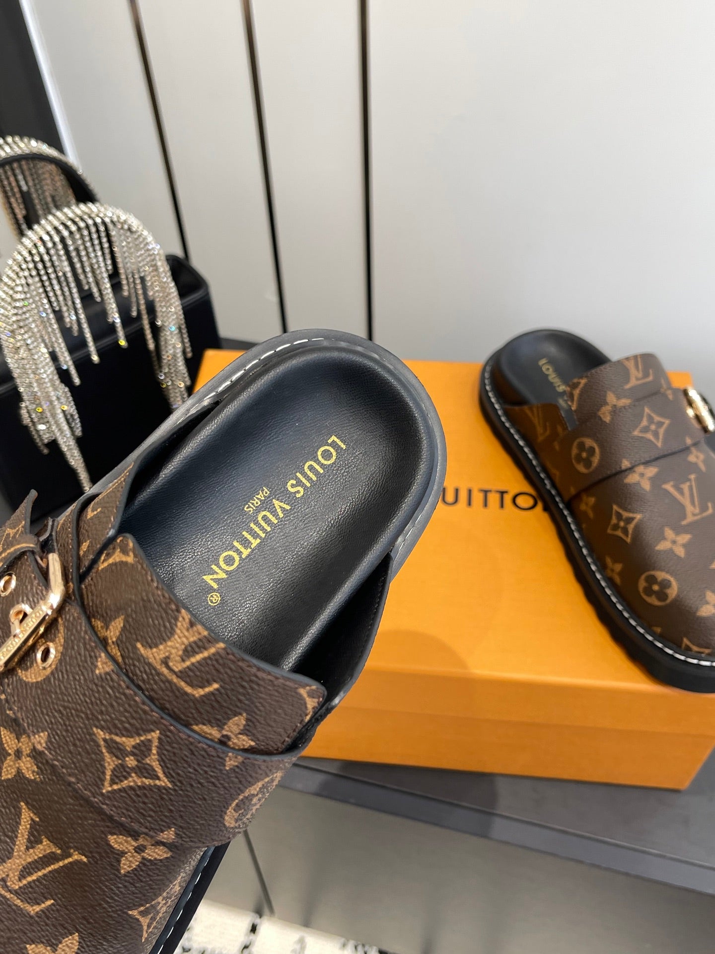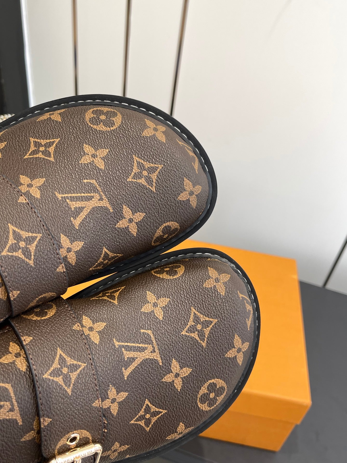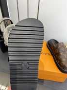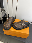 LV Cosy Comfort Mule Sandals Brown Gold Denim Leather 533464
