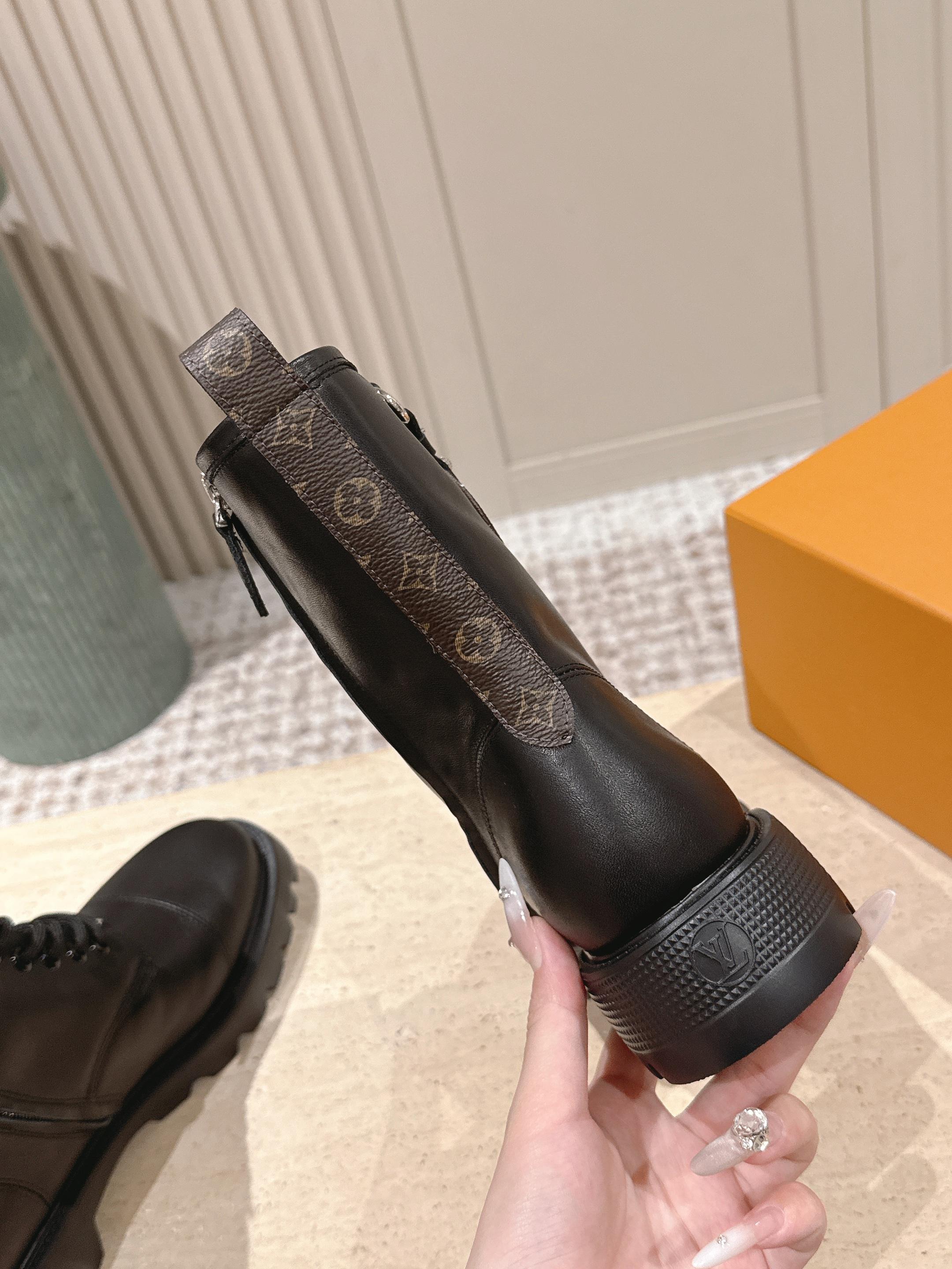 LV District Ranger Ankle Boot Black Plain Calf Leather 555687