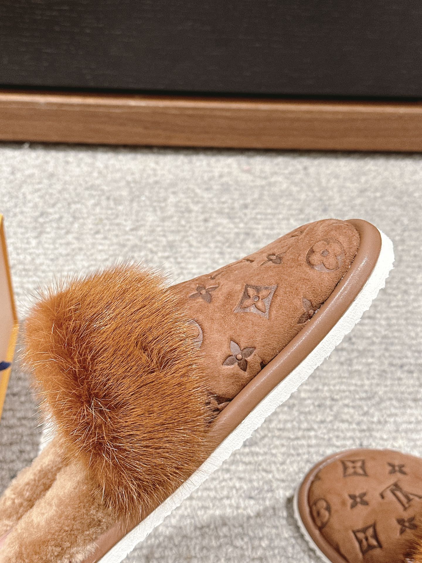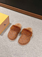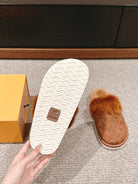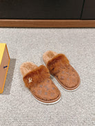 LV Flat Mule Brown With Fur Monogram Suede
