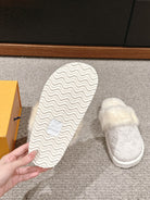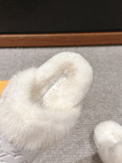 LV Flat Mule White With Fur Monogram Suede