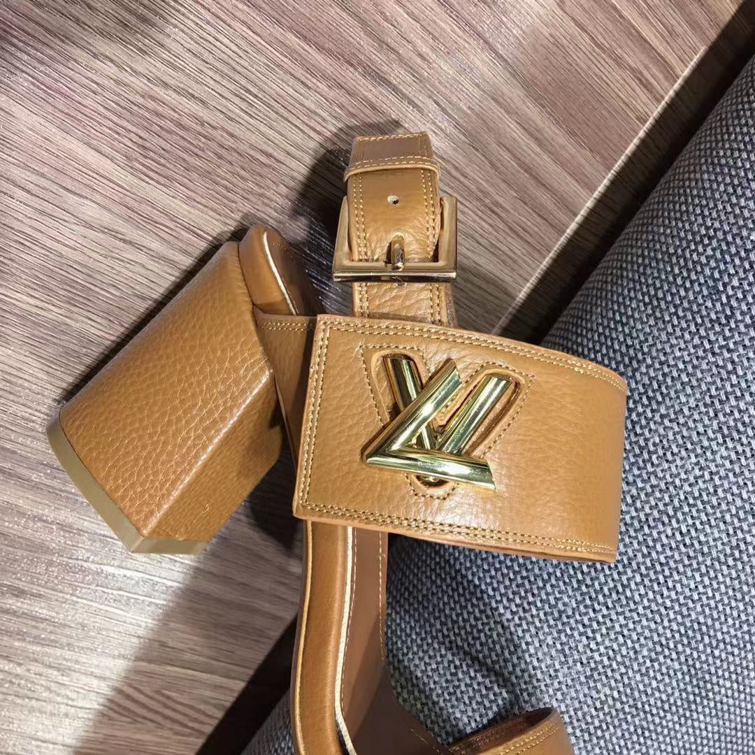 LV Horizon Ankle Strap Sandals 75mm Brown Yellow Calfskin