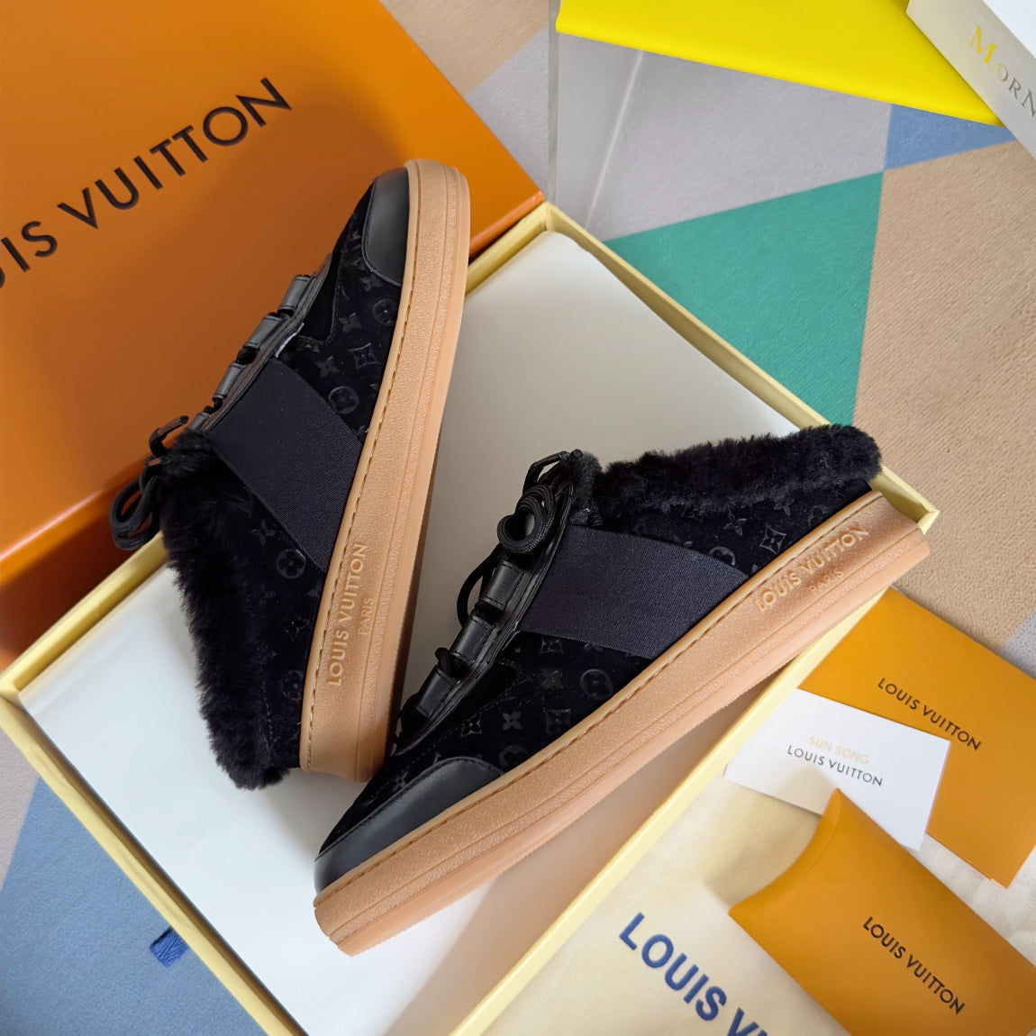 LV Lous Open Back Sneaker 30mm Black Monogram Suede