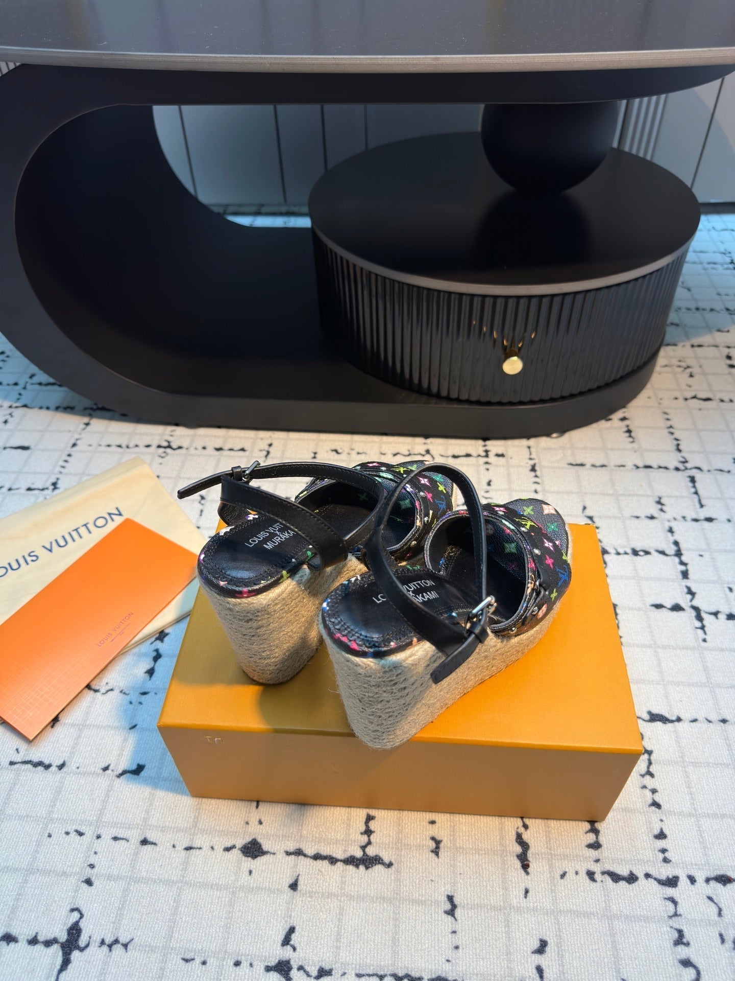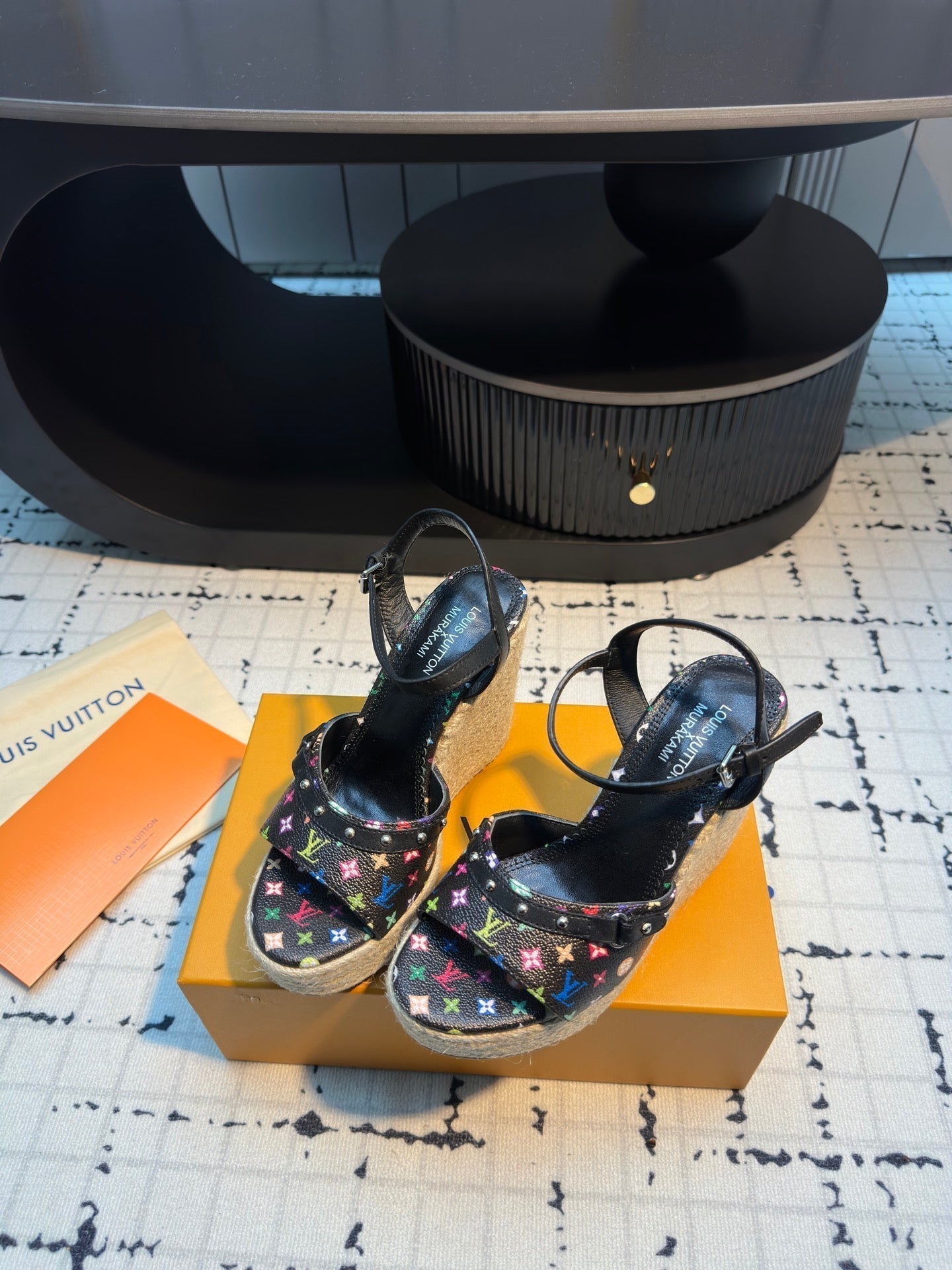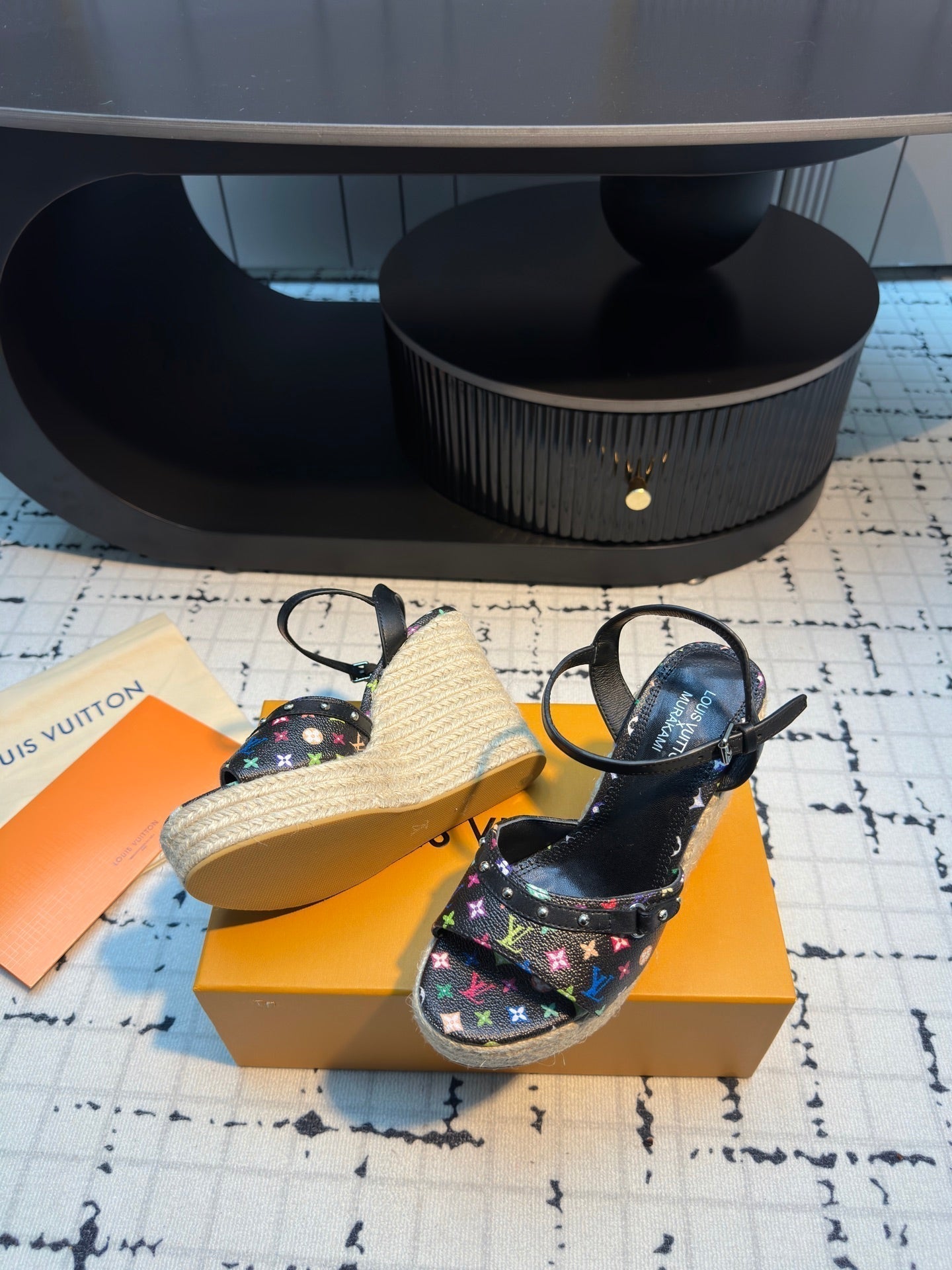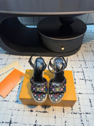 LV LV x TM Helios Wedge Sandal Black with Monogram Multicolore Leather 218917