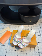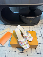 LV Mule 6AM LV x TM 95mm White with Monogram Multicolore Leather 218905