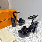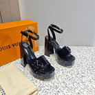 LV Shake Platform Sandal 110mm Black Patent Leather 456141