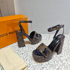 LV Shake Platform Sandal 110mm Brown Monogram Canvas 456142