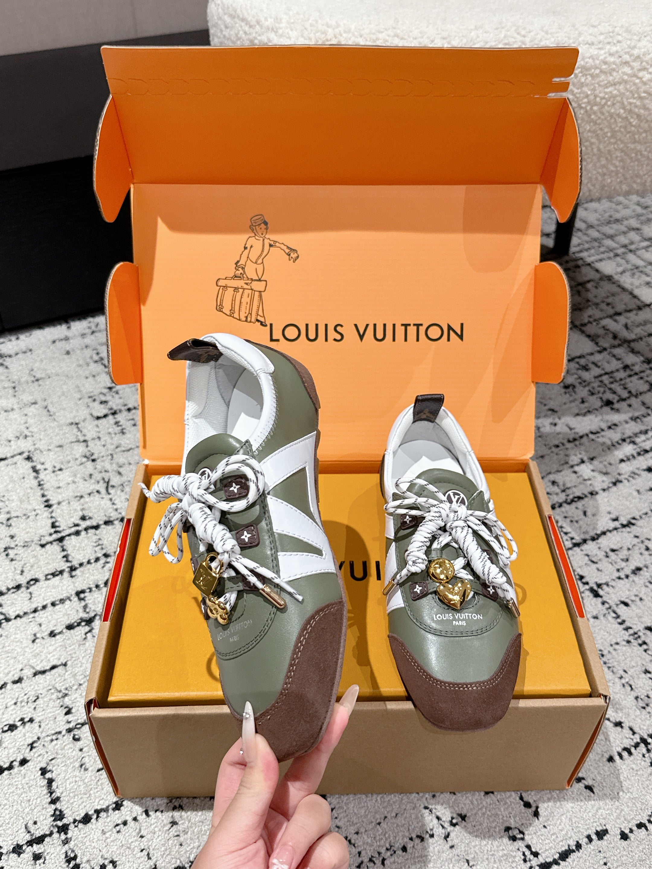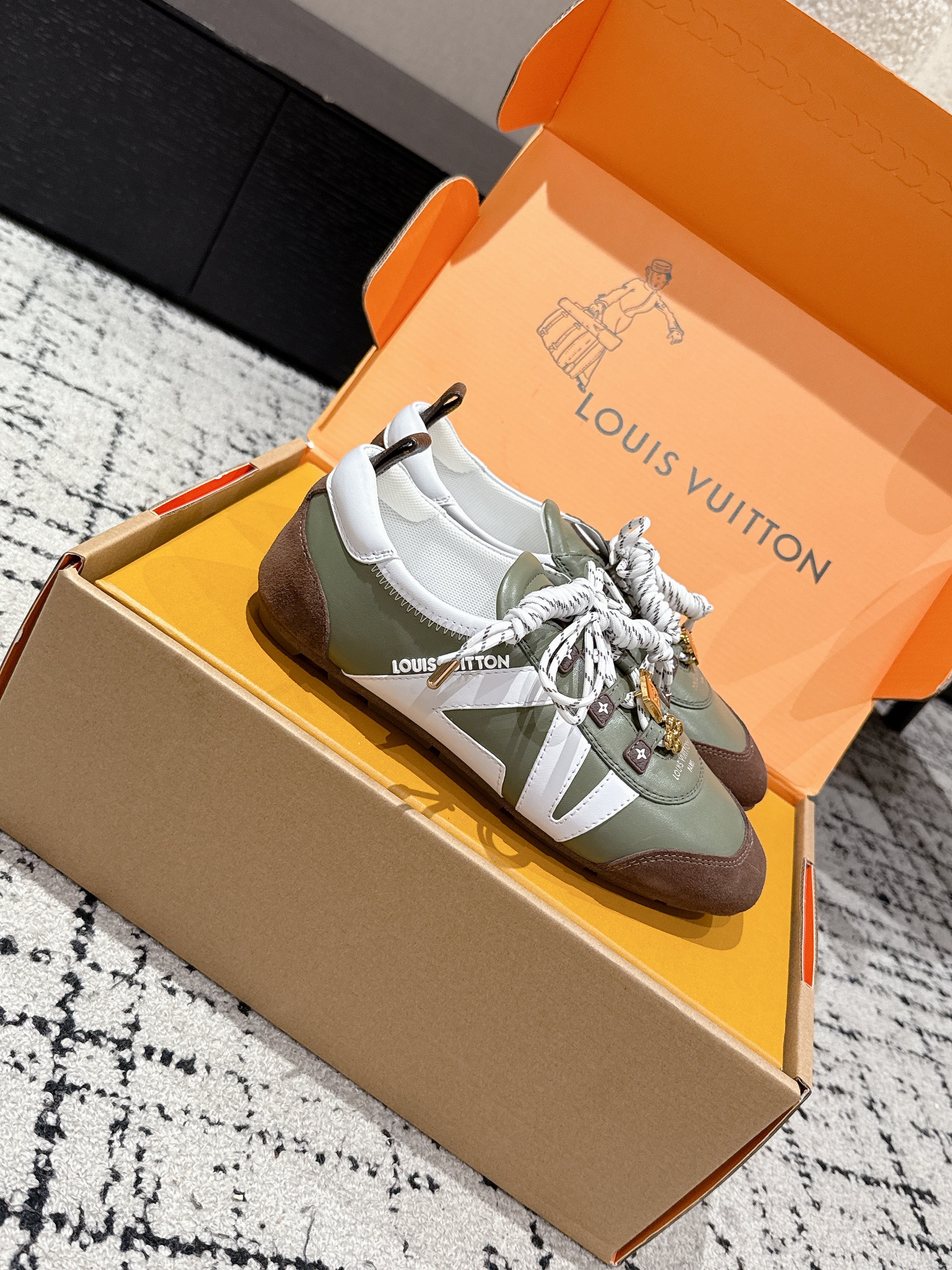 LV Sneakerina ballet-style sneaker green brown cowhide 383383