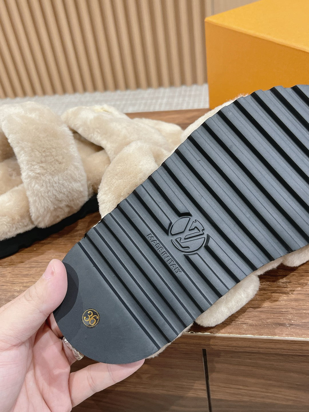 LV Sunset Flat Comfort Mule Light Brown Wool