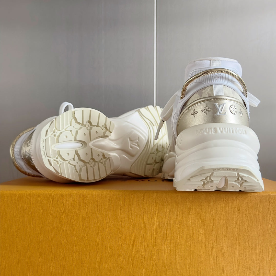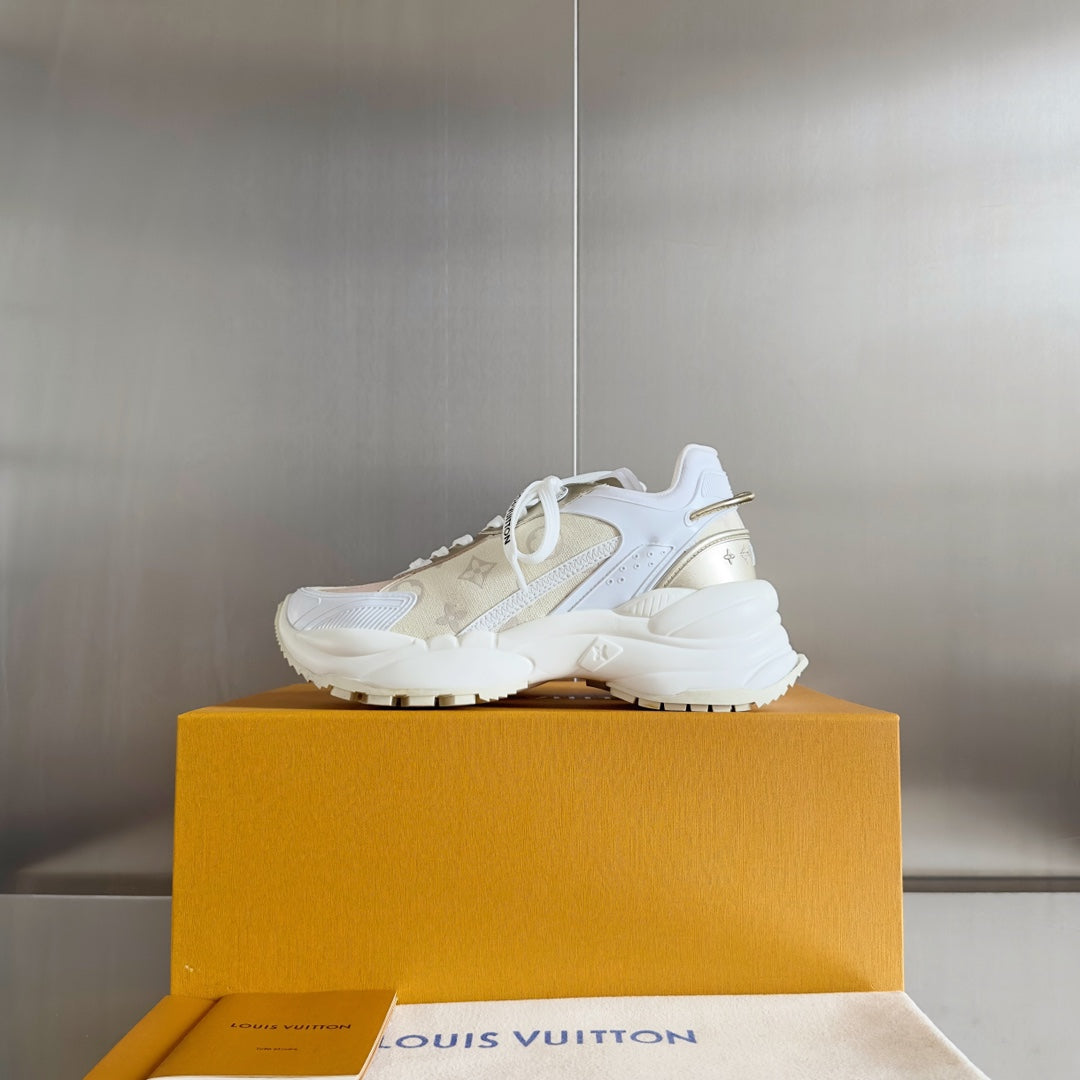 LV Run 55 Sneaker 55mm White Mix Gold Polyester Mesh Fabric