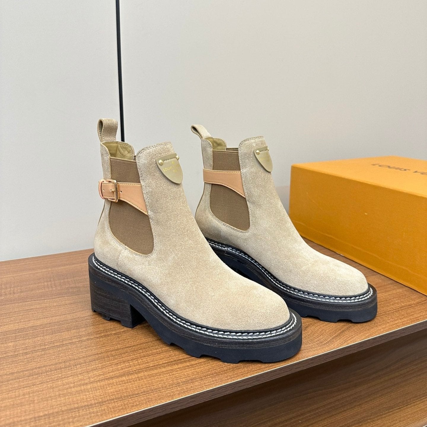 LV Checker Ankle Boots Beige Nubuck Calfskin