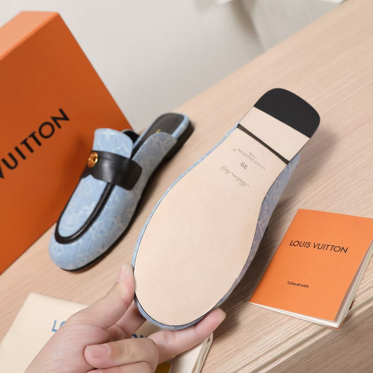LV 25C Flat Mule Black Monogram Denim Fabric 218314