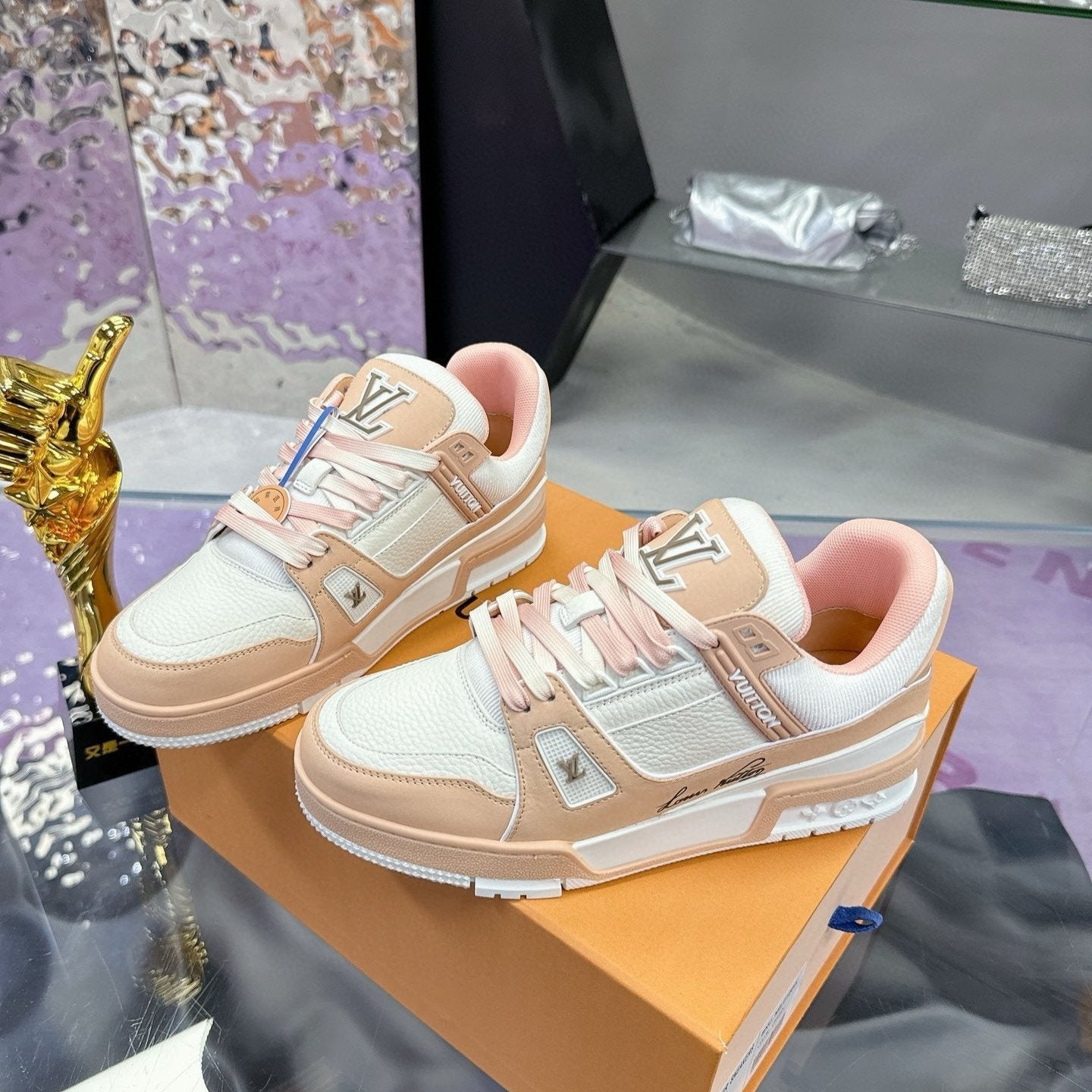 LV Trainer Sneaker Velcro Strap Black Pink Cowhide
