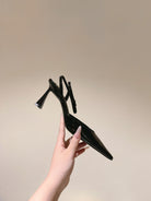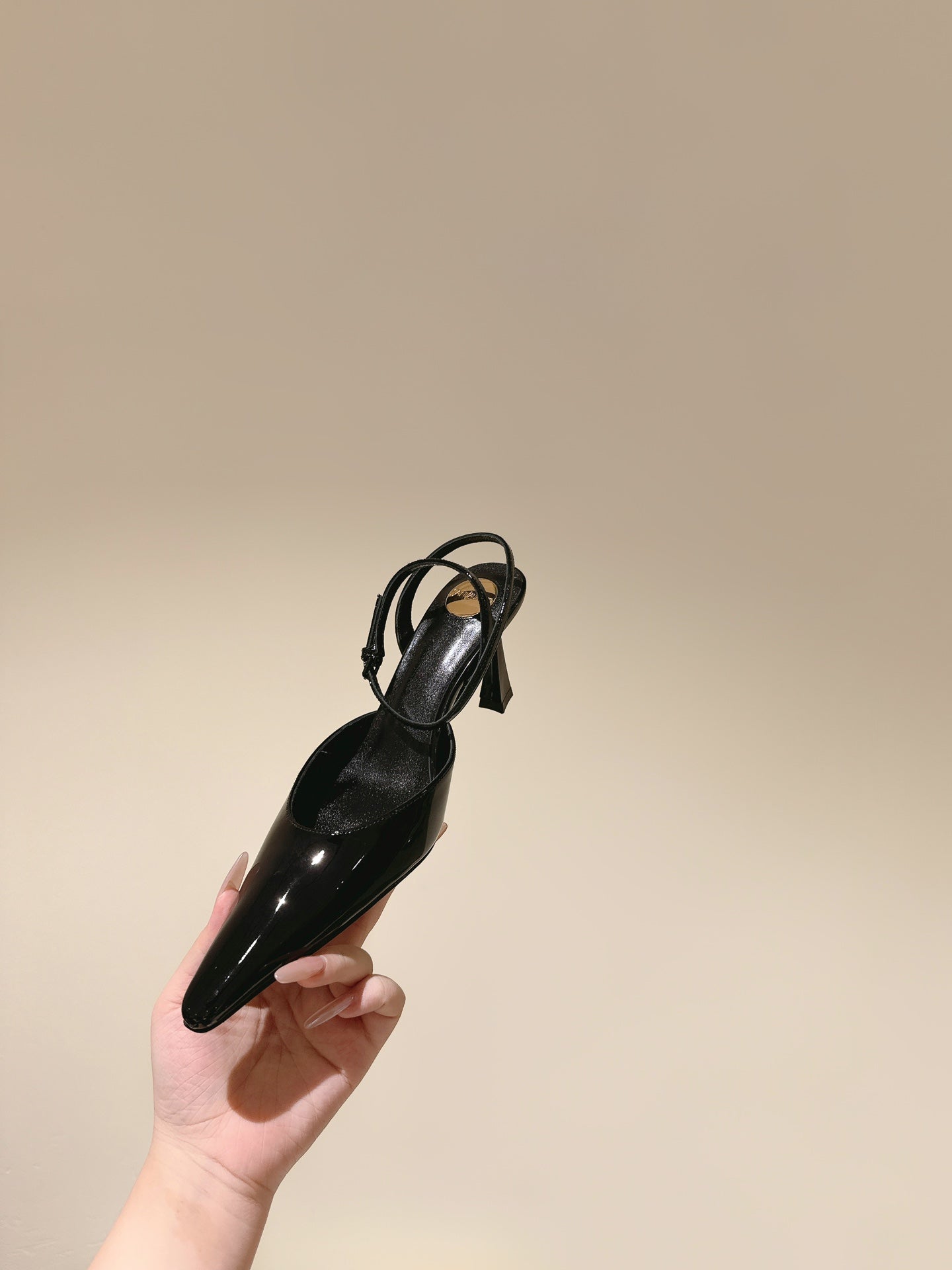 AIMÉE HIGH 8 CM SLINGBACK PUMPS IN BLACK PATENT CALFSKIN