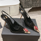 DUNE HIGH 10 CM SLINGBACK PUMPS IN BLACK PATENT LEATHER WITH CRYSTAL