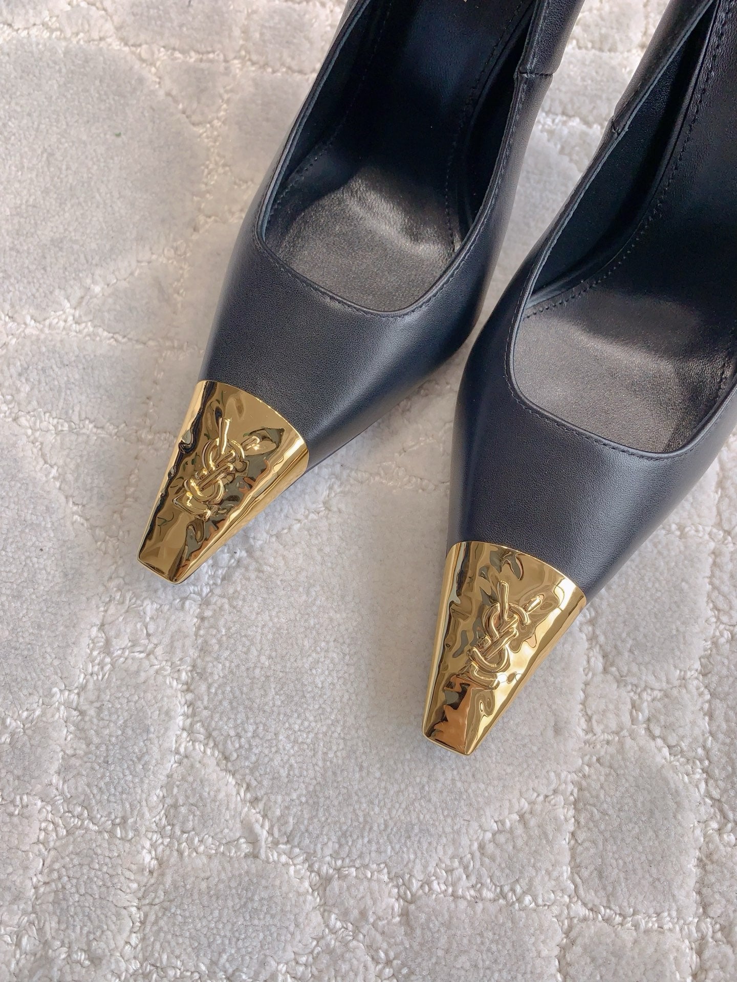HIGH HEEL 10 CM PUMP IN BLACK CALFSKIN WITH GOLD HARDWARE
