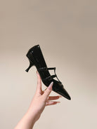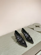 HIGH PUMP 45MM IN BLACK CALFSKIN WITH BLACK STRAPS