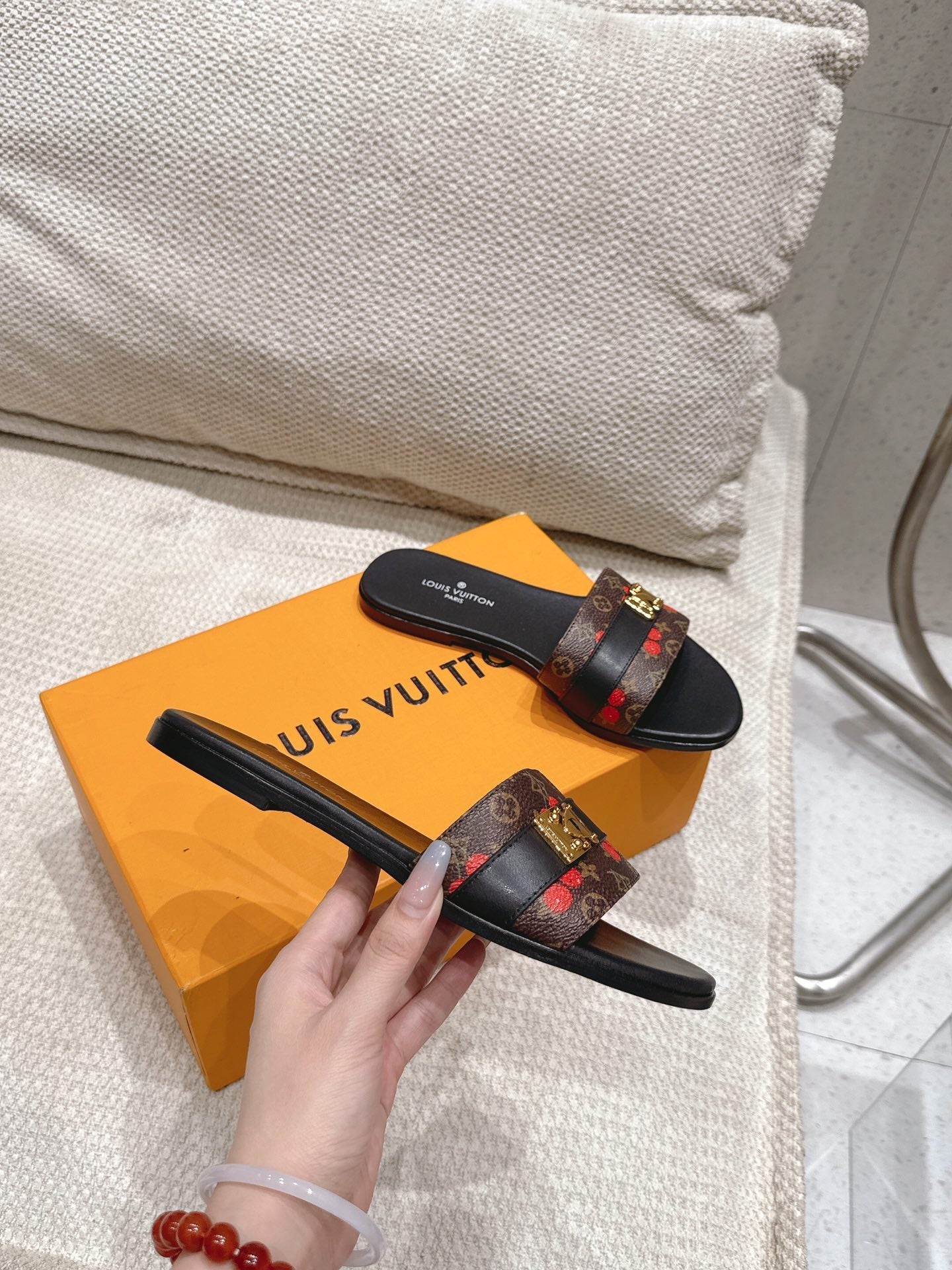 LV Flat Mules pairs raffia black brown monogram cowhide 383721