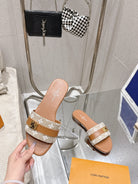 LV Flat Mules pairs raffia brown monogram cowhide 383724