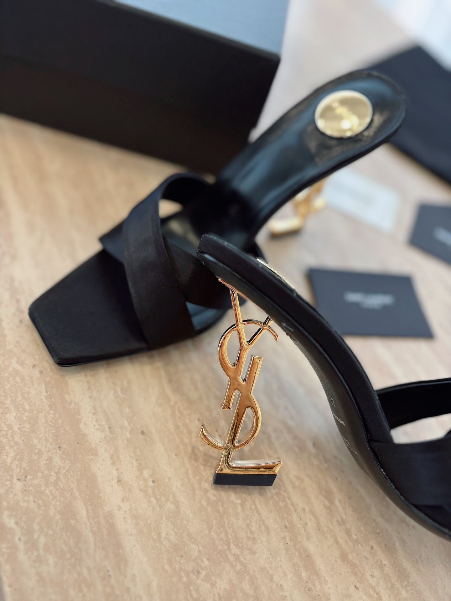 OPYUM OPEN TOE HIGH 10 CM MULES IN BLACK CALFSKIN