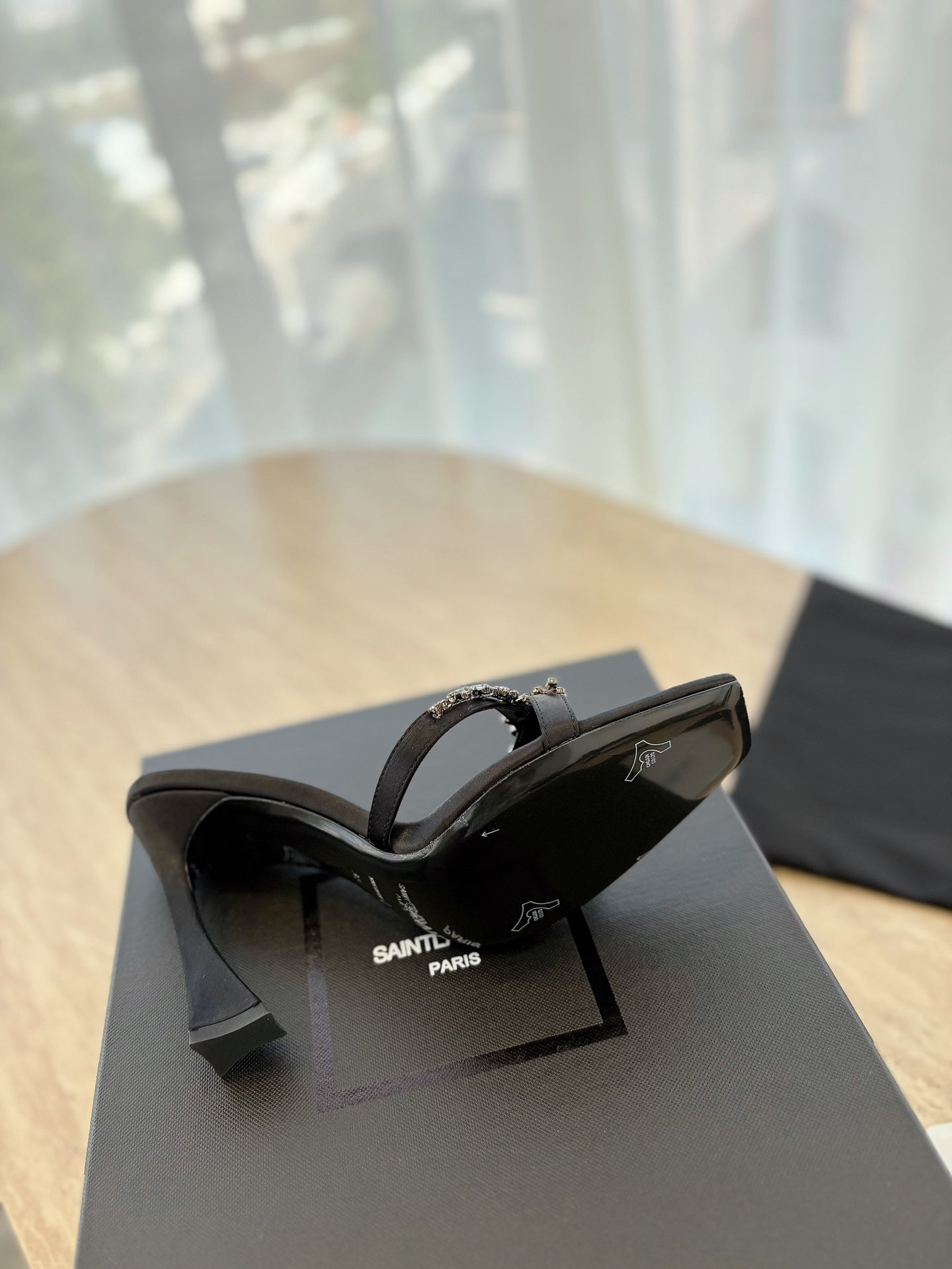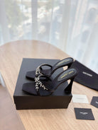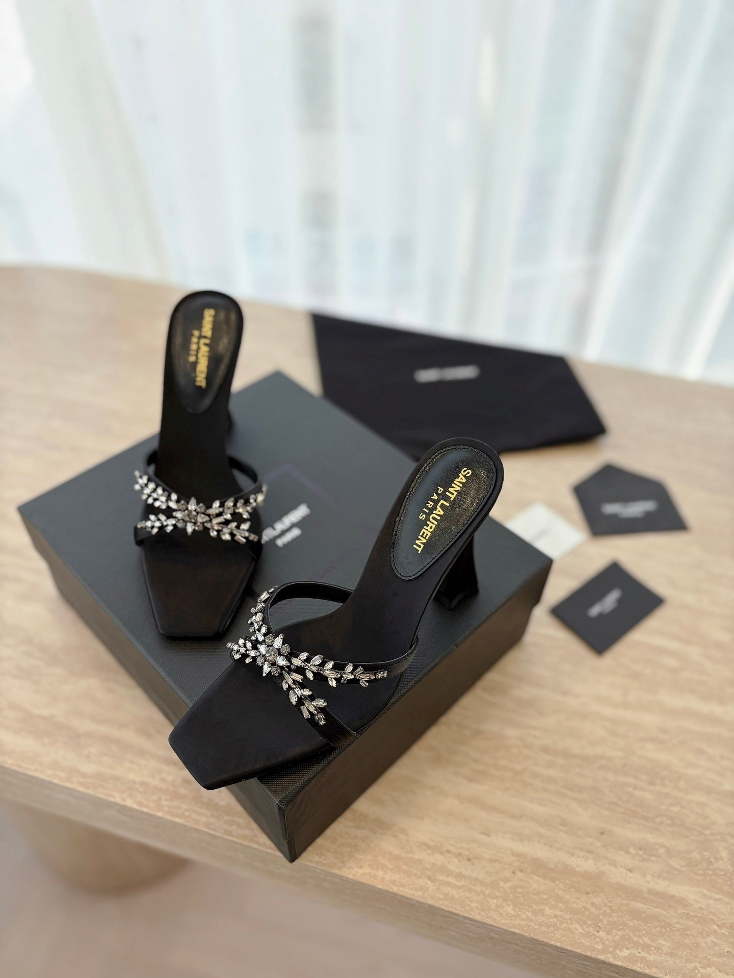 RAV HIGH HEEL 10 CM EMBELLISHED BLACK SATIN MULES
