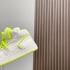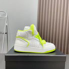 HIGH-TOP SNEAKERS IN WHITE MIX NEON GREEN CALFSKIN