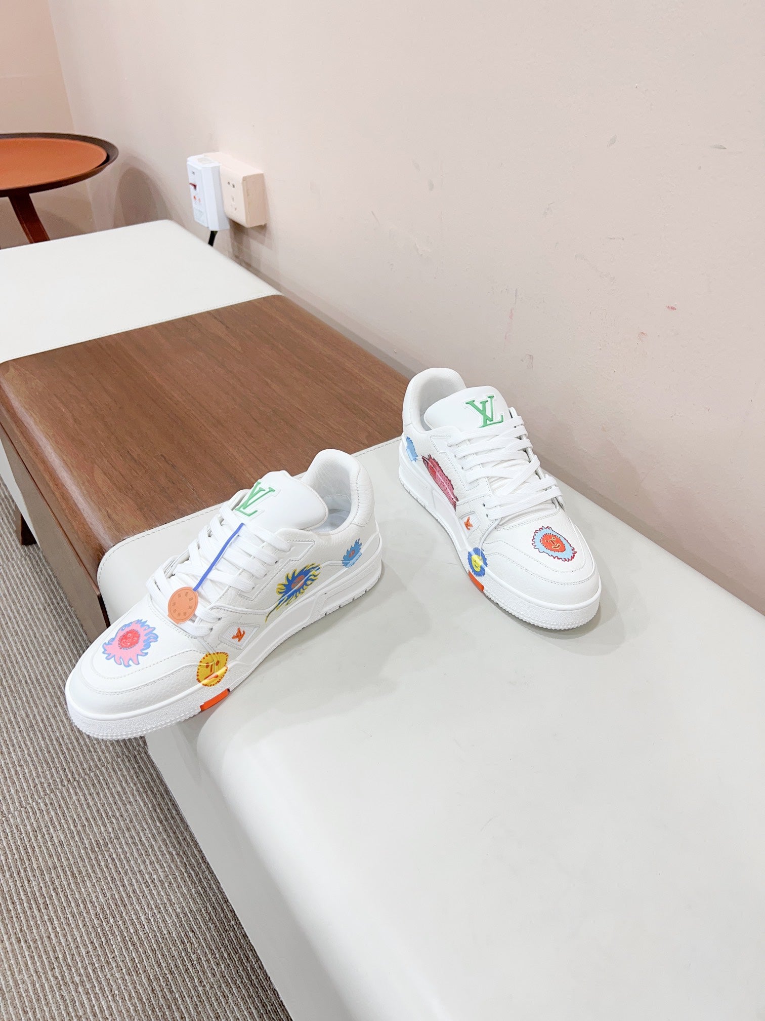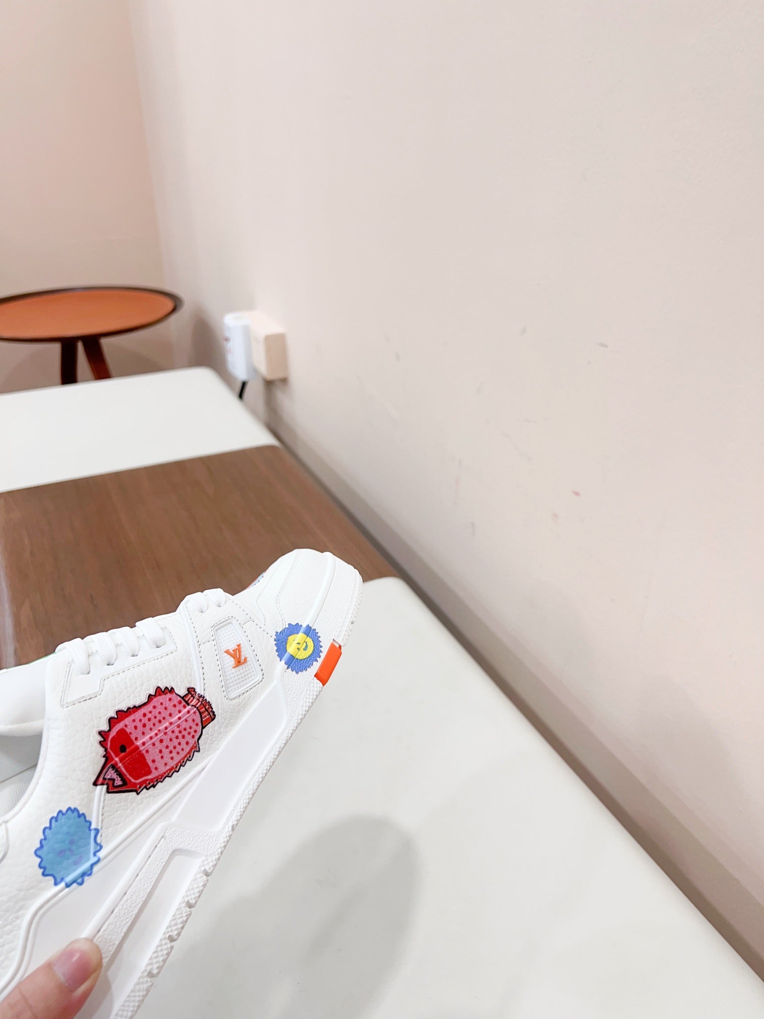 LV YK Trainer Sneakers White Print Cowhide 492958