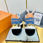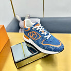 NEO RUN AWAY SNEAKER IN CLASSIC BLUE MONOGRAM DENIM AND ORANGE CALFSKIN
