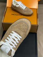STADIUM SNEAKER IN KHAKI BROWN EMBOSSED MONOGRAM SUEDE