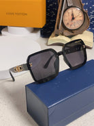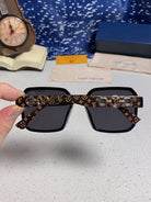 SQUARE SUNGLASSES 573321 IN BROWN ACETATE BLACK LENS MONOGRAM LOGO