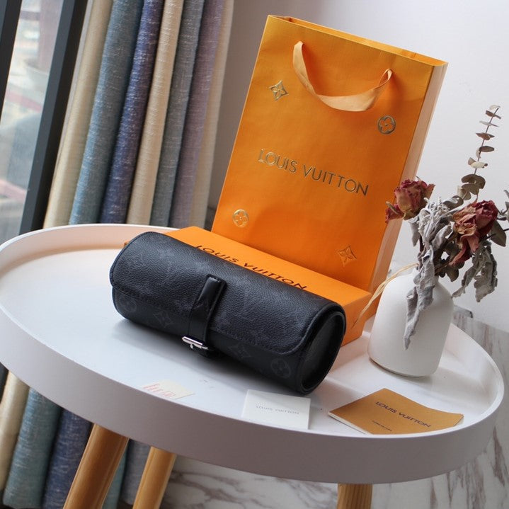 LV M47530 3 Watch Case Black Monogram Eclipse Canvas & Cowhide HW
