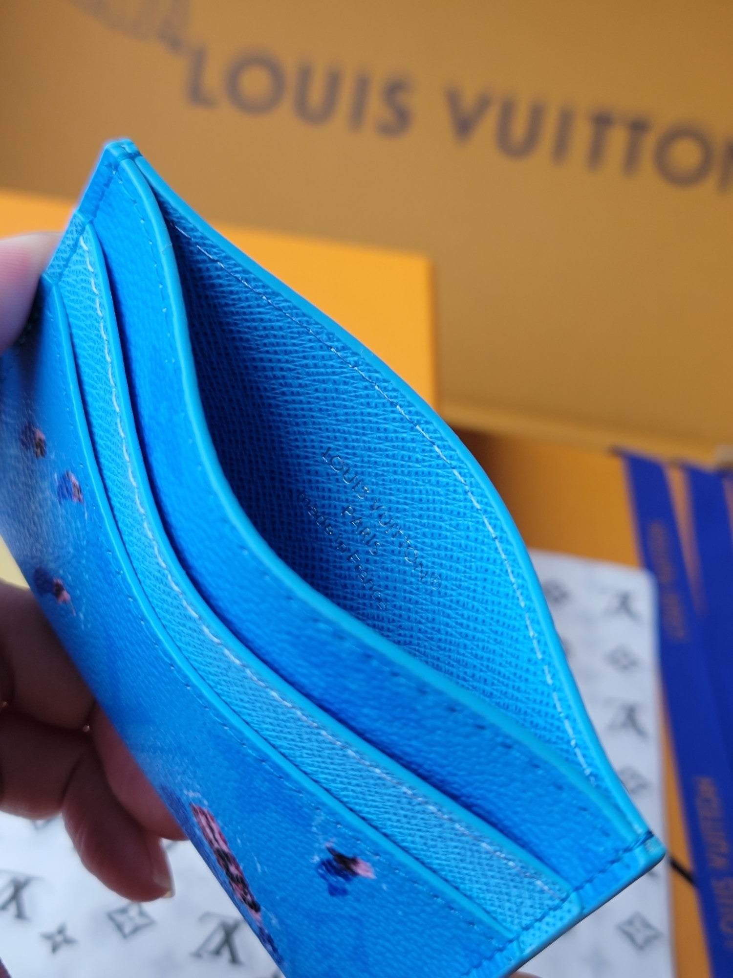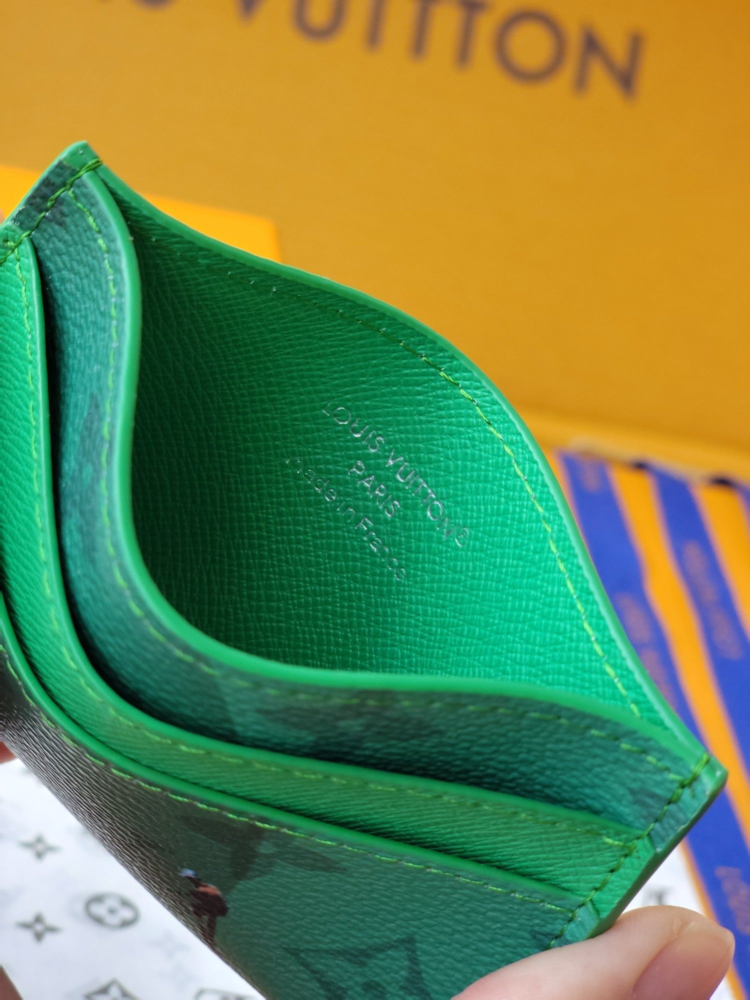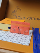LV Double Card Holder Featuretiny Sport Scenes Printed Cowhide