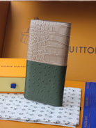 LV M84668 Brazza Wallet Multicolor Alligator Ostrich Calfskin