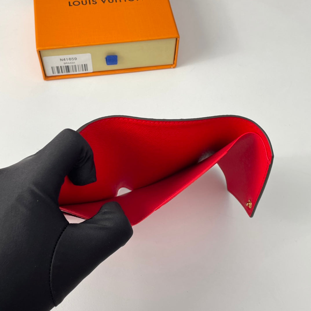 LV N41659 Cardboard Victorine Wallet Brown Red Monogram Canvas 221676