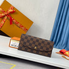 LV N63544 Emilie Wallet Brown Red Monogram Canvas 221666