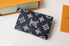 LV Pocket Organizer Wallet Grey Navy Blue Monogram Cowhide 248064
