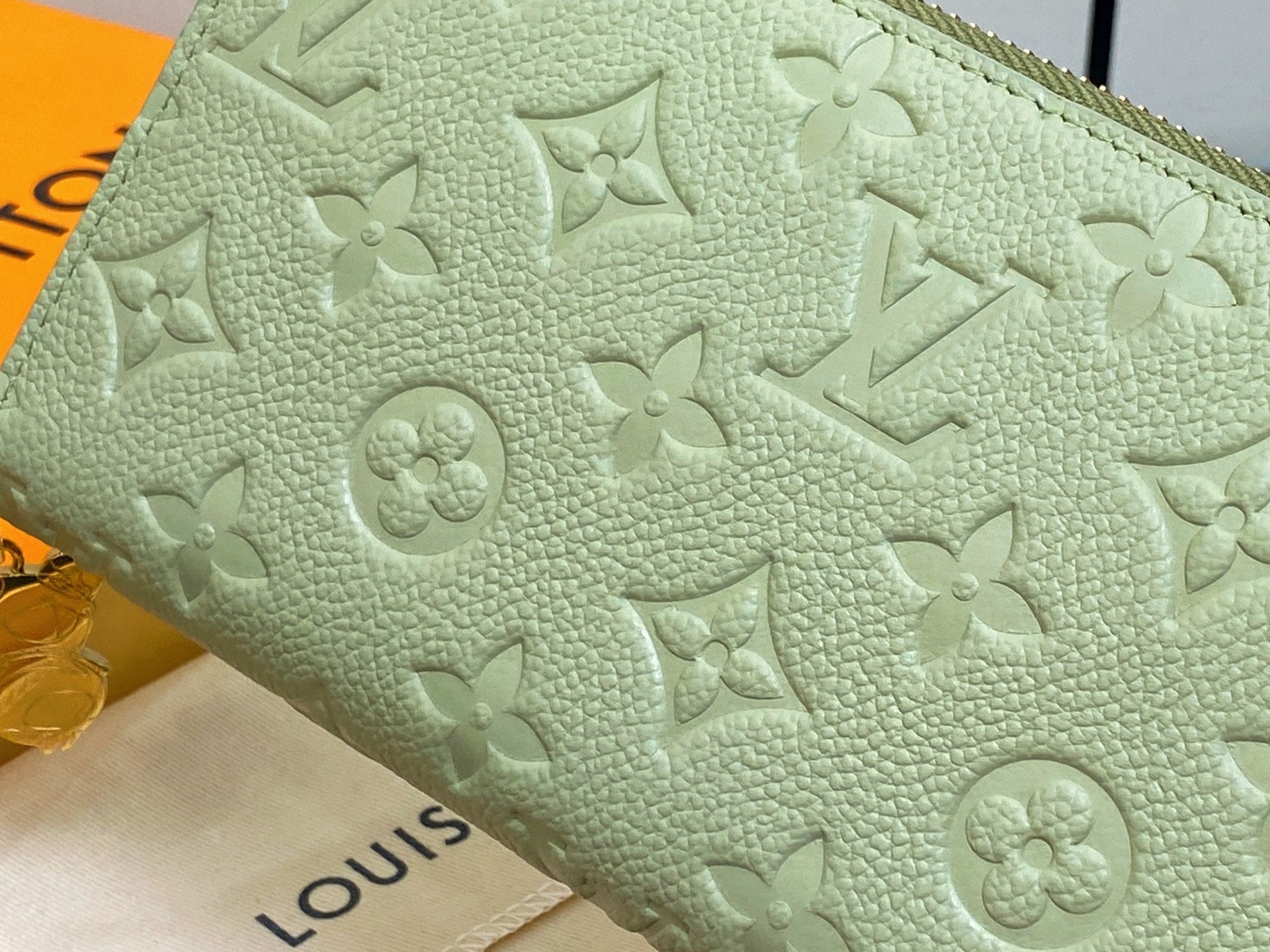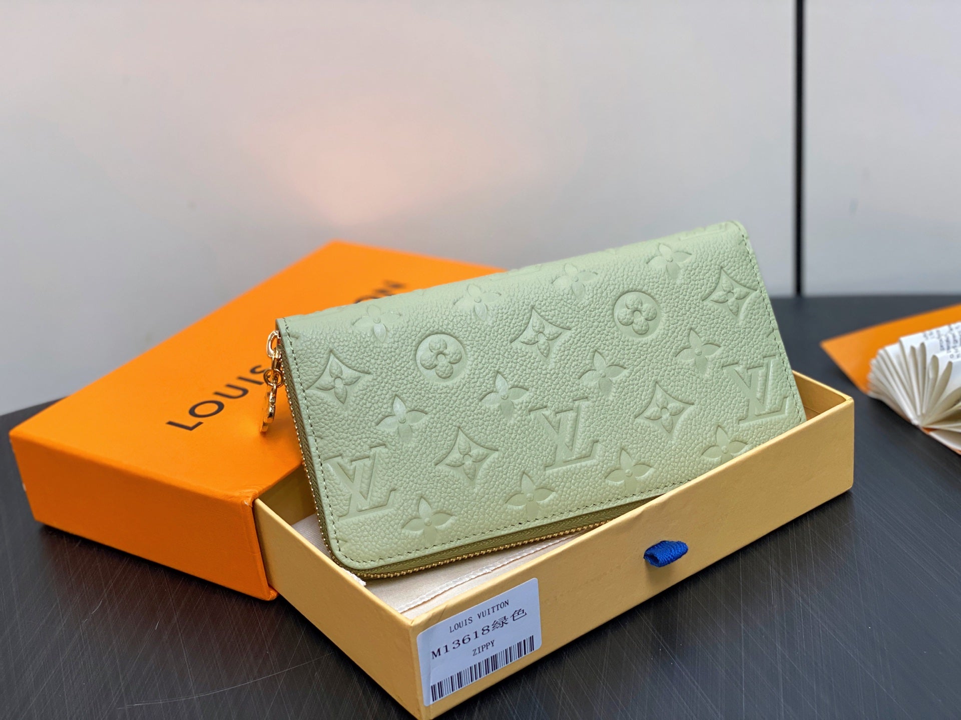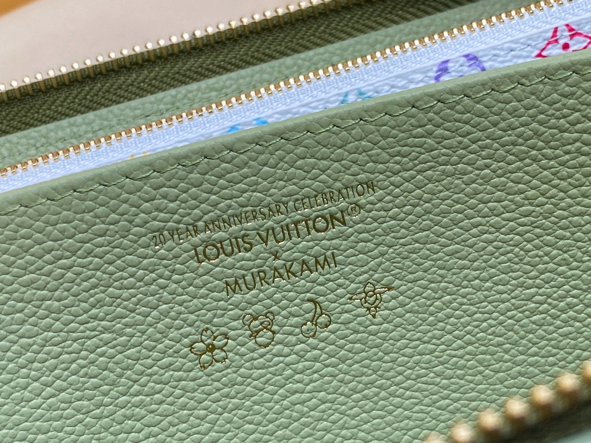 LV × TM Zipper Wallet Green Gold Leather 329877