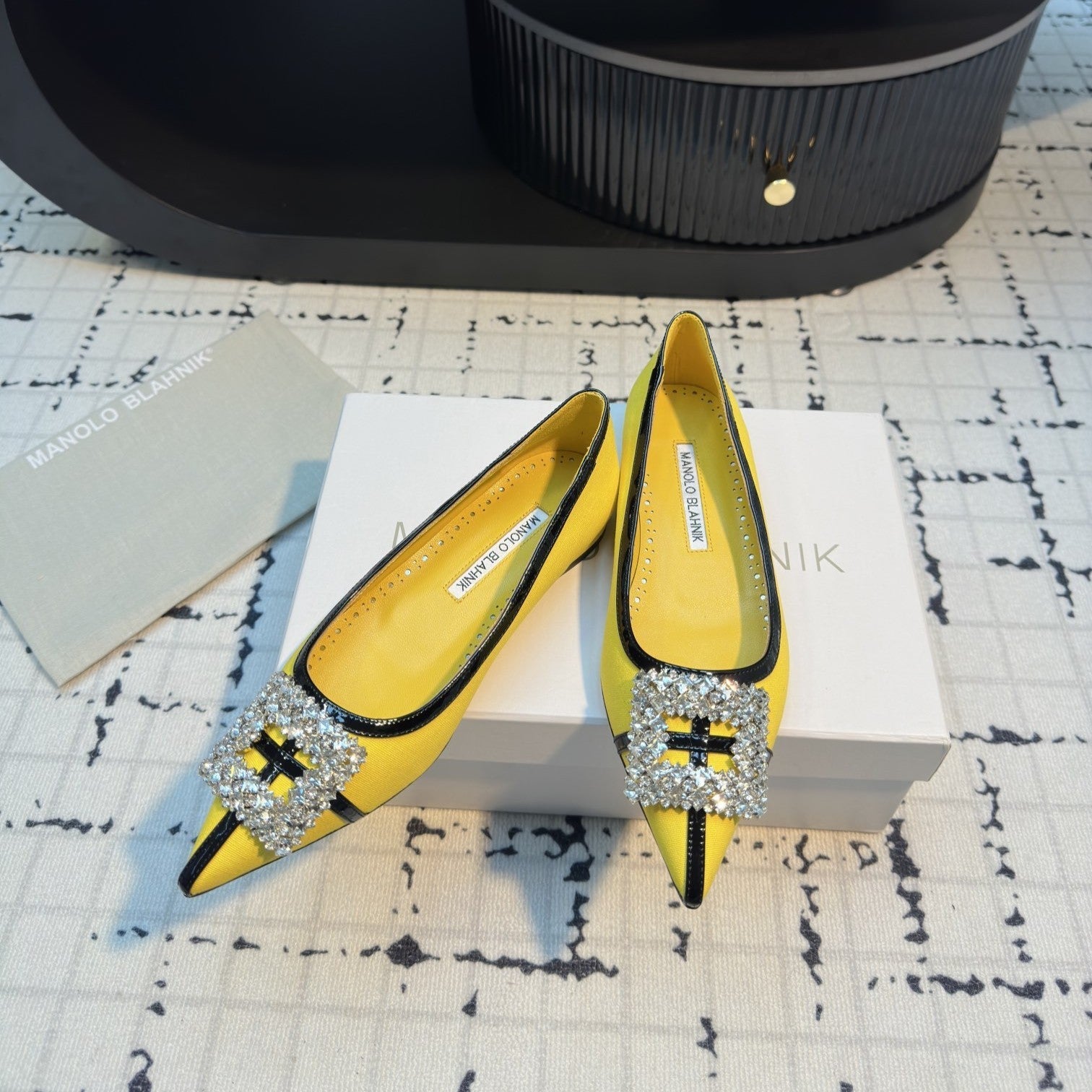Hangisi 10mm Ballet Flat Yellow Linen with Black Leather Jewel Buckle 161061