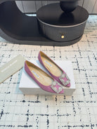 Hangisi 20 Ballet Flat Pink Glitter Fabric Leather Jewel Buckle 912609