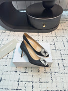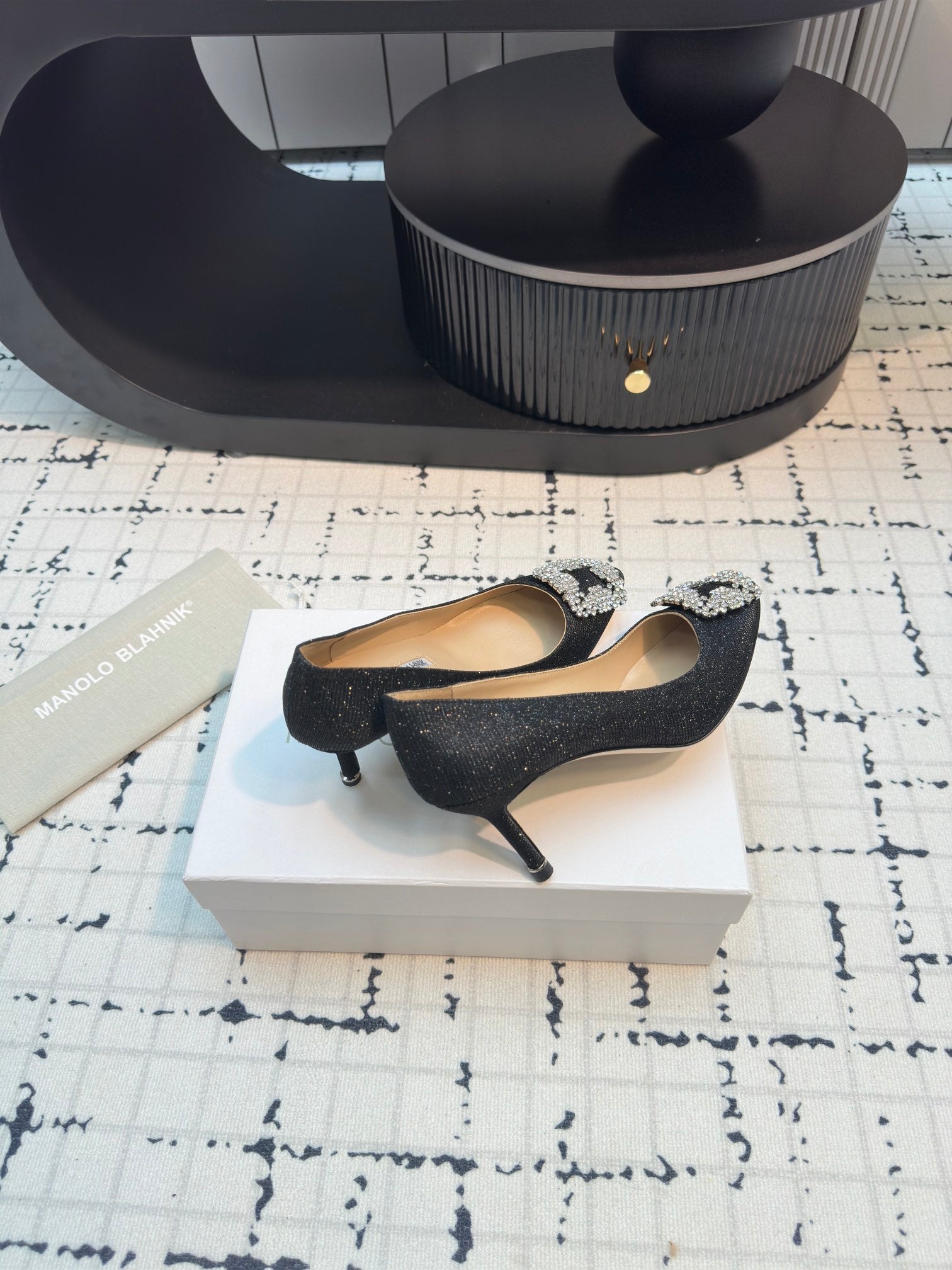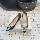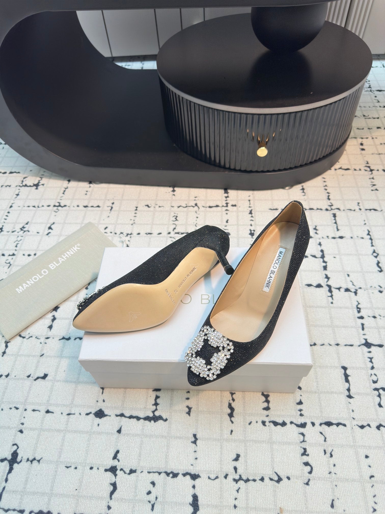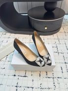 Hangisi 70 Black Glitter Fabric Leather Jewel Buckle Pumps 912612