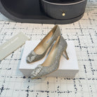 Hangisi 70 Gold Glitter Fabric Leather Jewel Buckle Pumps 912614