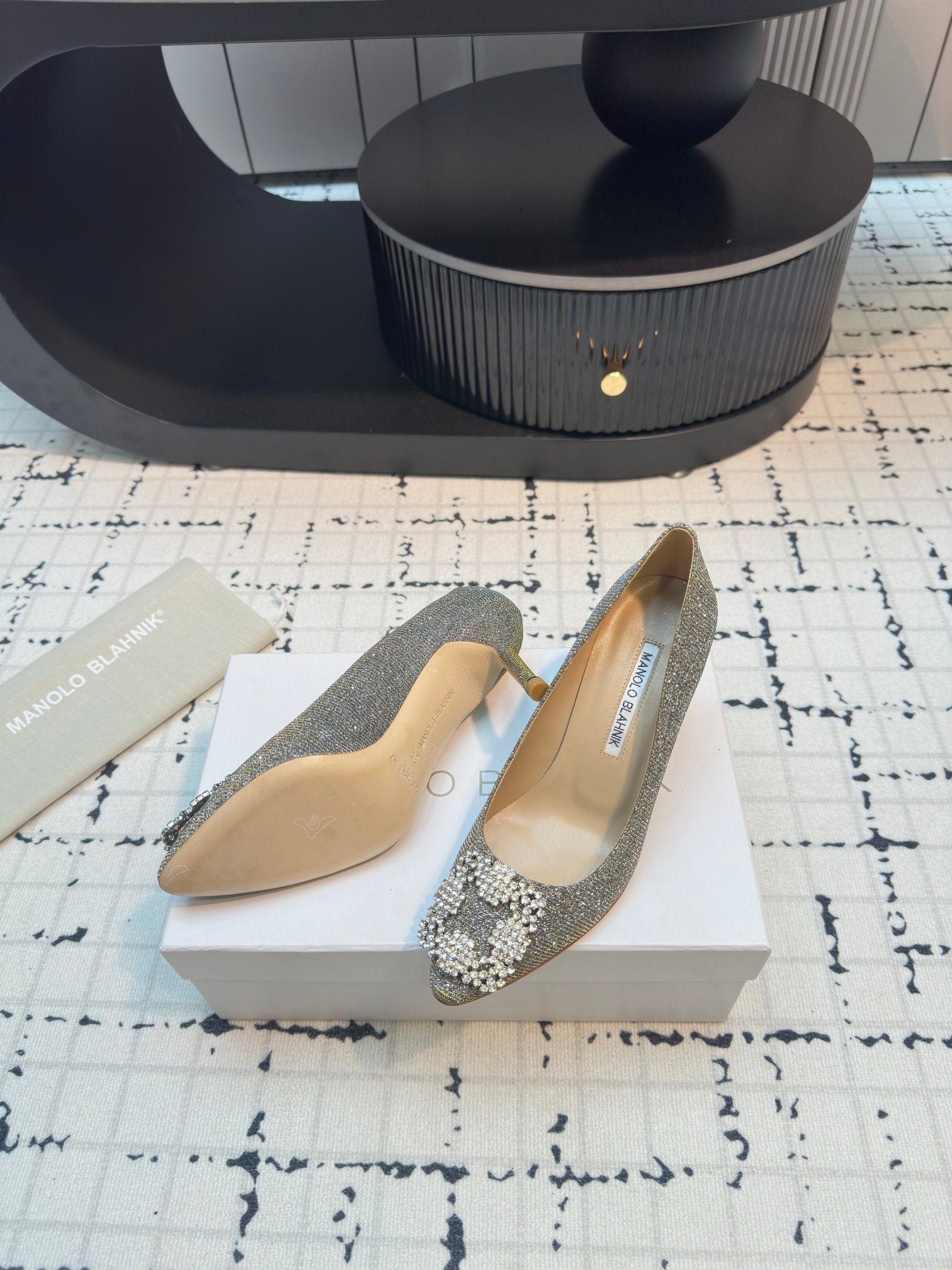 - Material: Glitter Fabric, Lambskin
