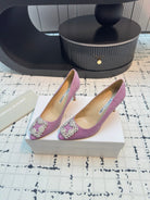 Hangisi 70 Pink Glitter Fabric Leather Jewel Buckle Pumps 912613